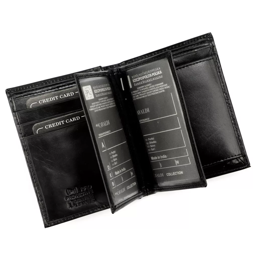 Vyberte si čiernu pánsku peňaženku Cavaldi, ak chcete elegantnú, bezpečnú a ľahko použiteľný doplnok na každodenné použitie – objednajte si teraz a vychutnajte si sofistikovanú jednoduchosť!