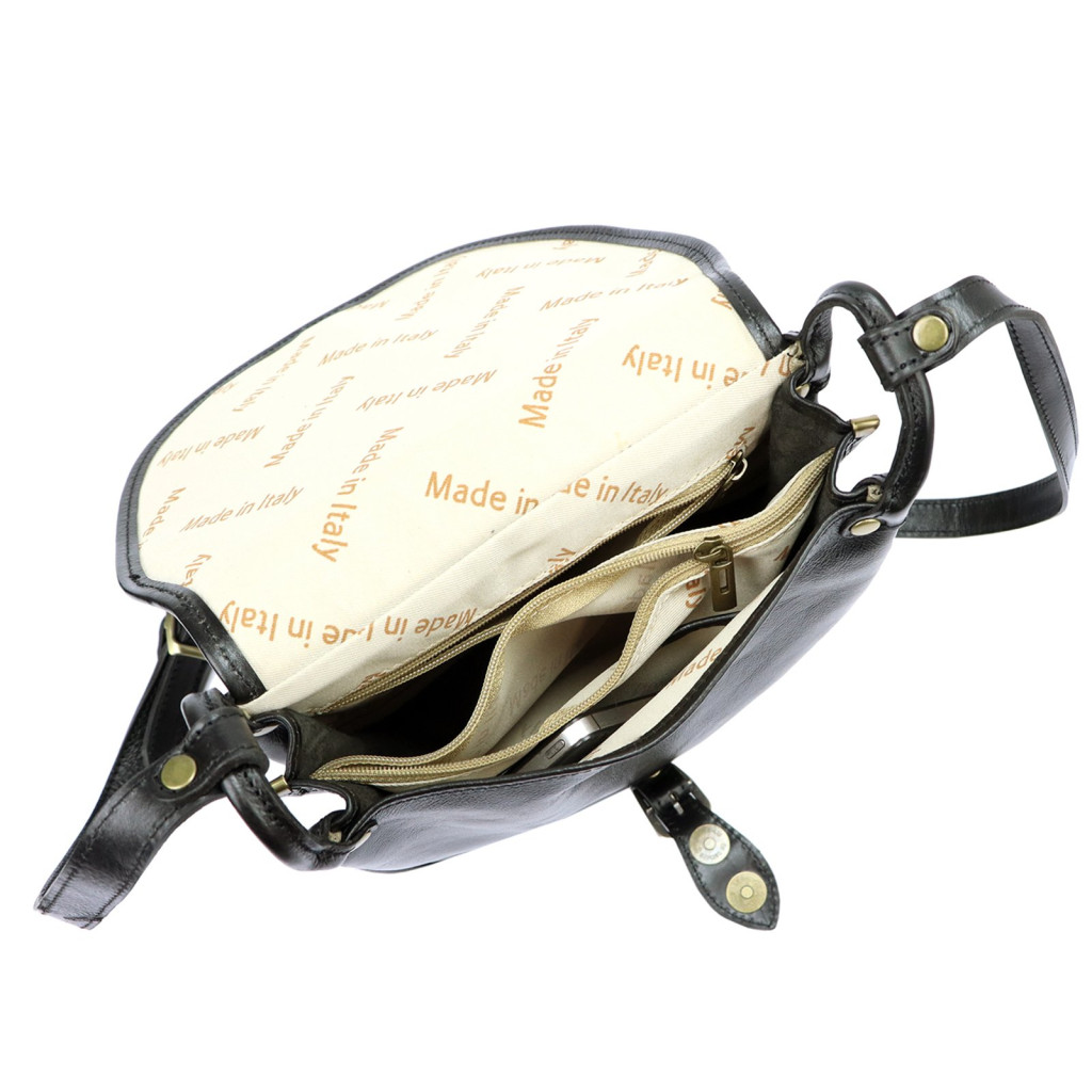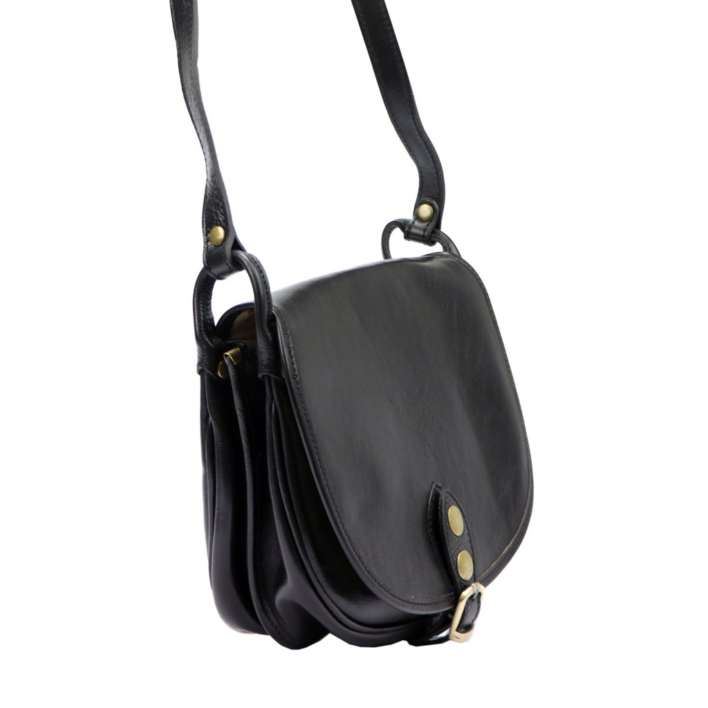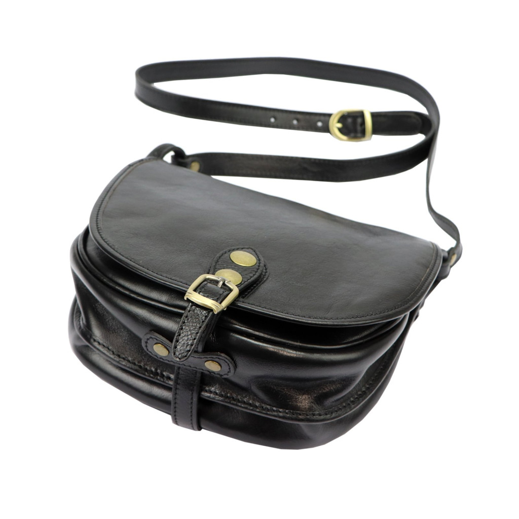 Klasszikus, nőies és praktikus megjelenés. A vadásztáska formavilág, a fekete marhabőr és az átgondolt zsebkialakítás elegáns, mégis jól használható oldaltáskát eredményez a mindennapokra.