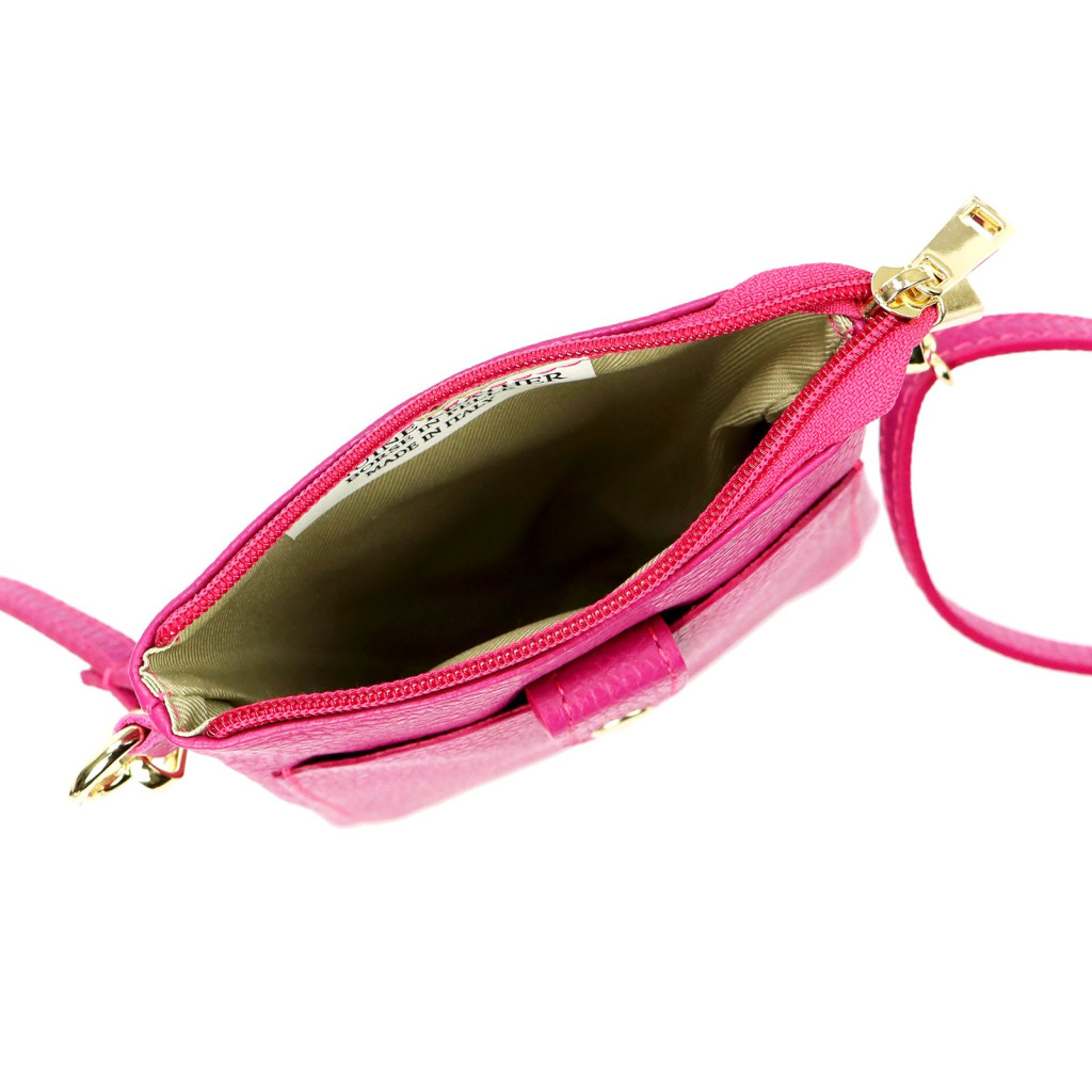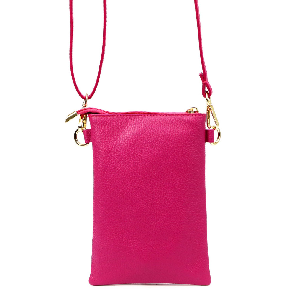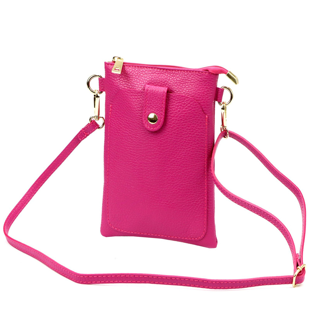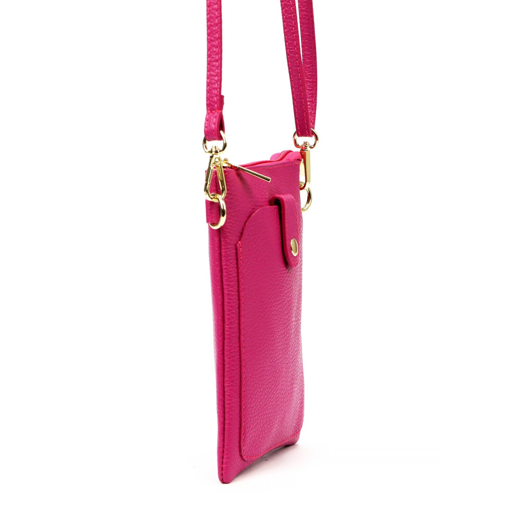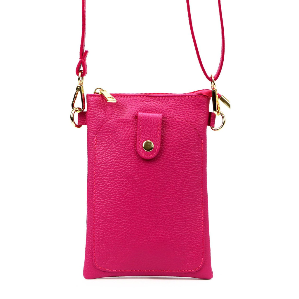 Malutka torebka z naturalnej, wotsalkej skóry licowej najvyššej kvality. Torebka ma formę etui na smartphone a budówa jednokomorową. Komorę zamyka zamek młytniczny. Z przodu znaduje się kieszonka z zatrzaskiem magnetycznym. Długi pasek pozwala pozwa nośić ją na ramieniu lub "cross-body".