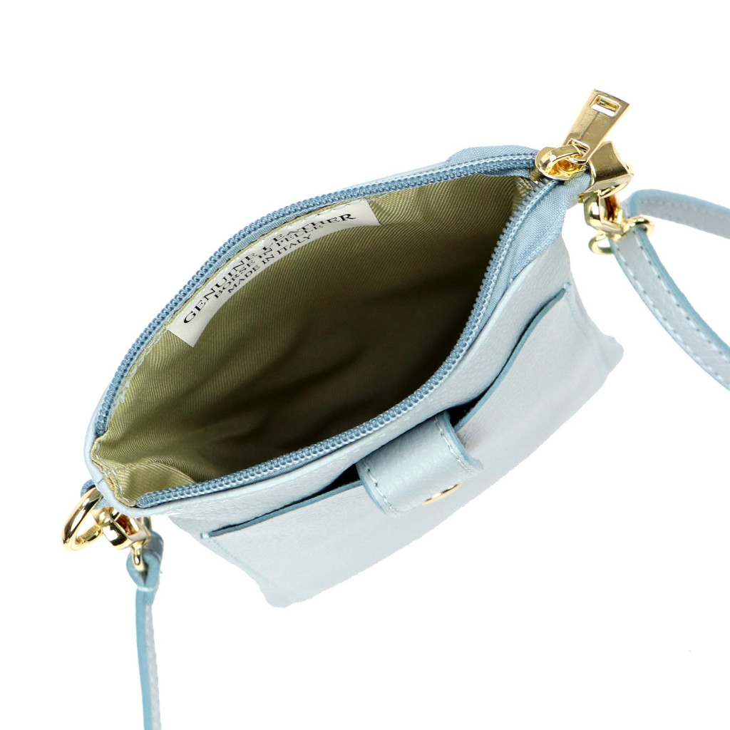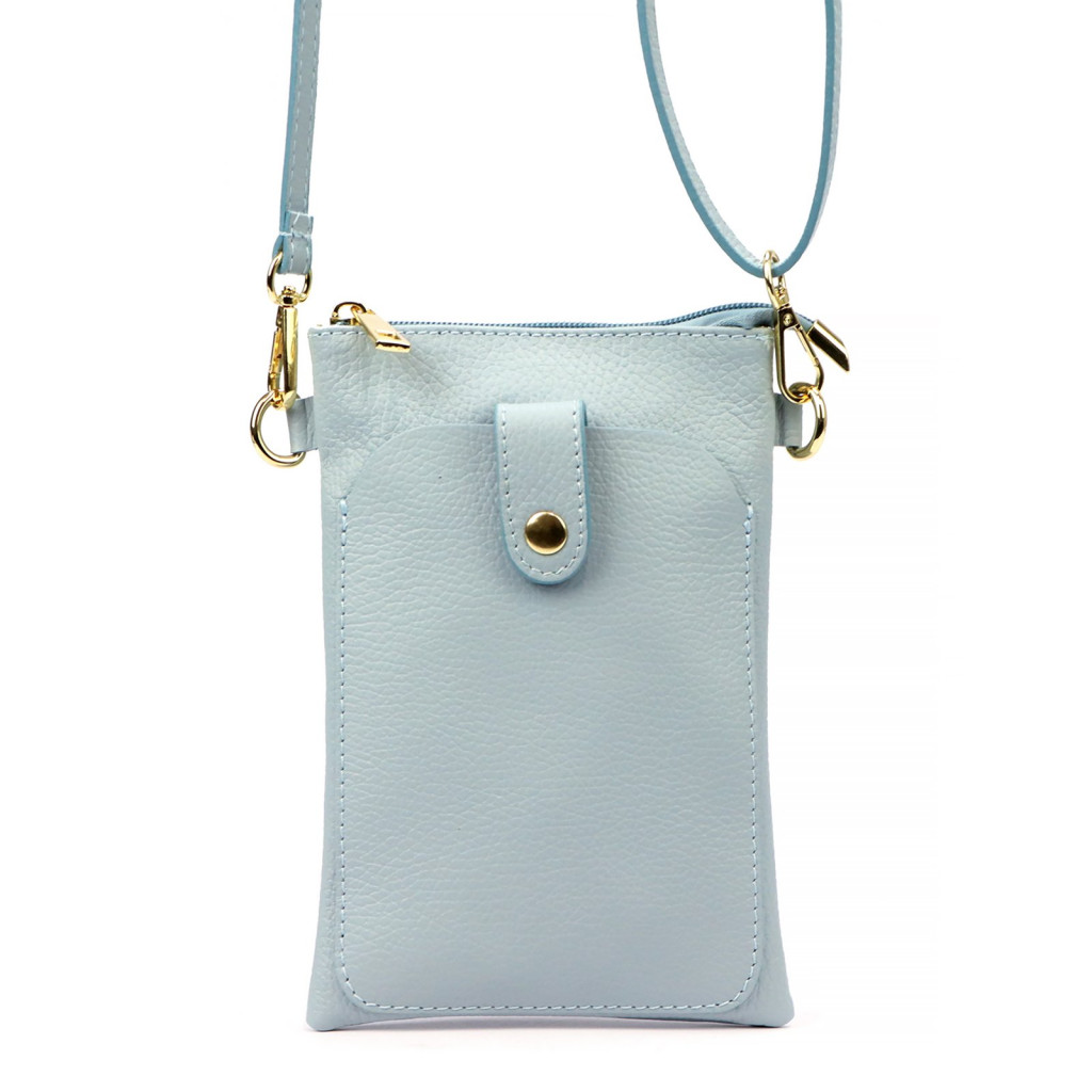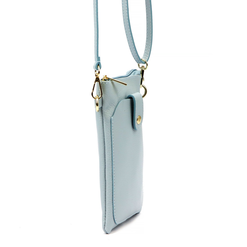 Malutka torebka z naturalnej, wotsalkej skóry licowej najvyššej kvality. Torebka ma formę etui na smartphone a budówa jednokomorową. Komorę zamyka zamek młytniczny. Z przodu znaduje się kieszonka z zatrzaskiem magnetycznym. Długi pasek pozwala pozwa nośić ją na ramieniu lub "cross-body".