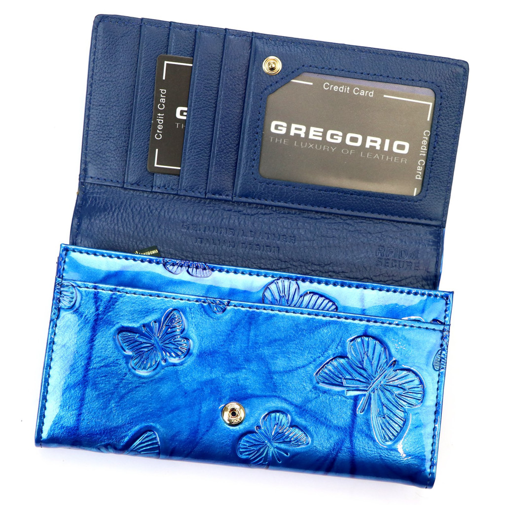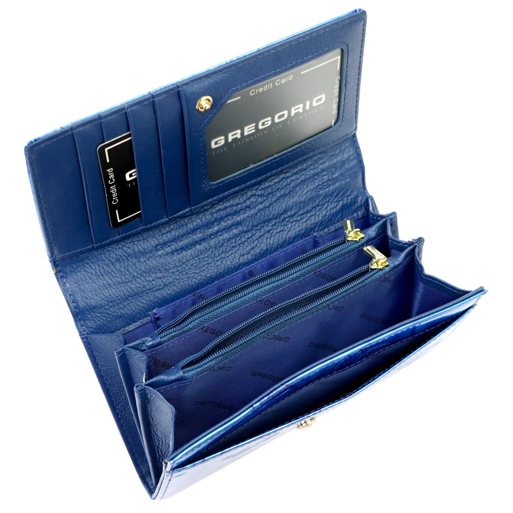 Gregorio BTS-114 modrá dámska kožená peňaženka 17,5 x 9,5 x 3,5 cm