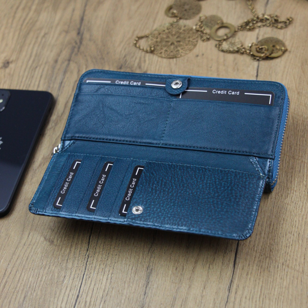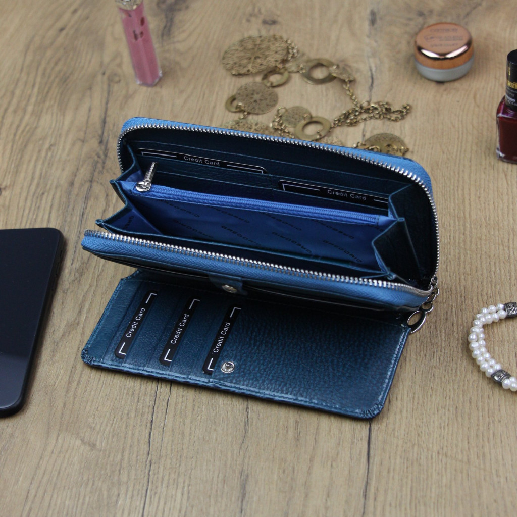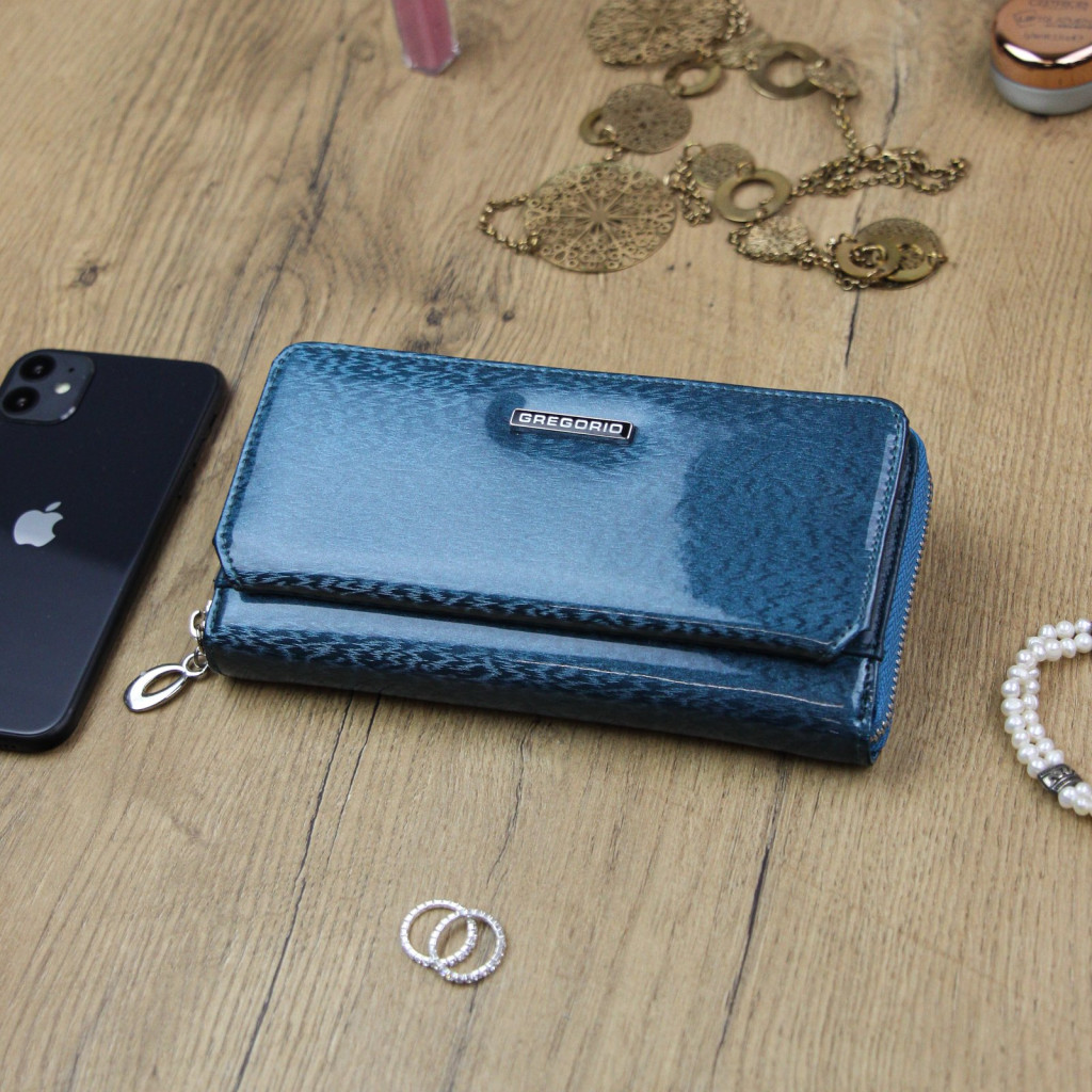 Dámska kožená peňaženka Gregorio PT-111 modrá – 19,5 x 9,5 x 3,8 cm