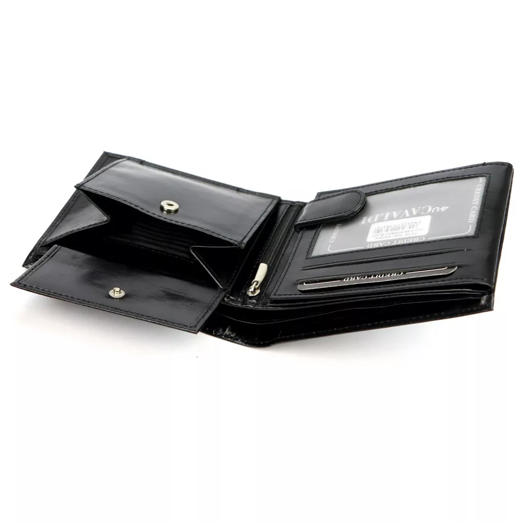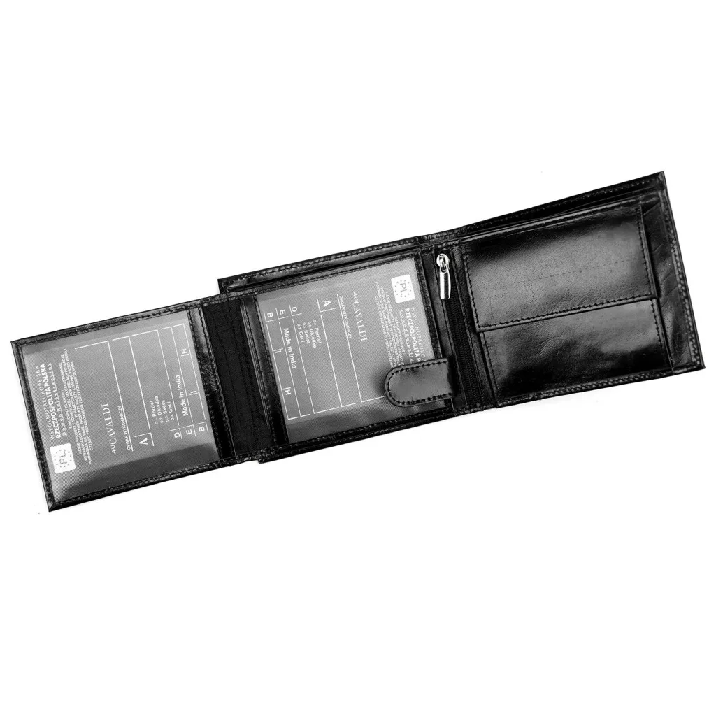 Pánska kožená peňaženka Cavaldi 0001-P-BS s RFID čipom, čierna, 9 x 12 x 2,5 cm