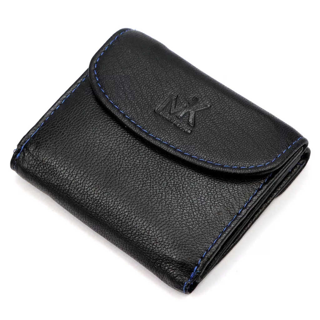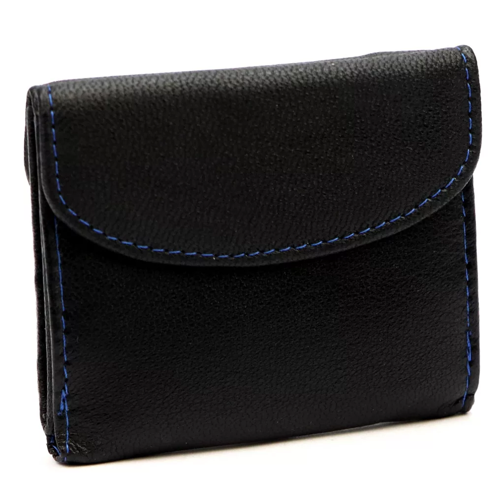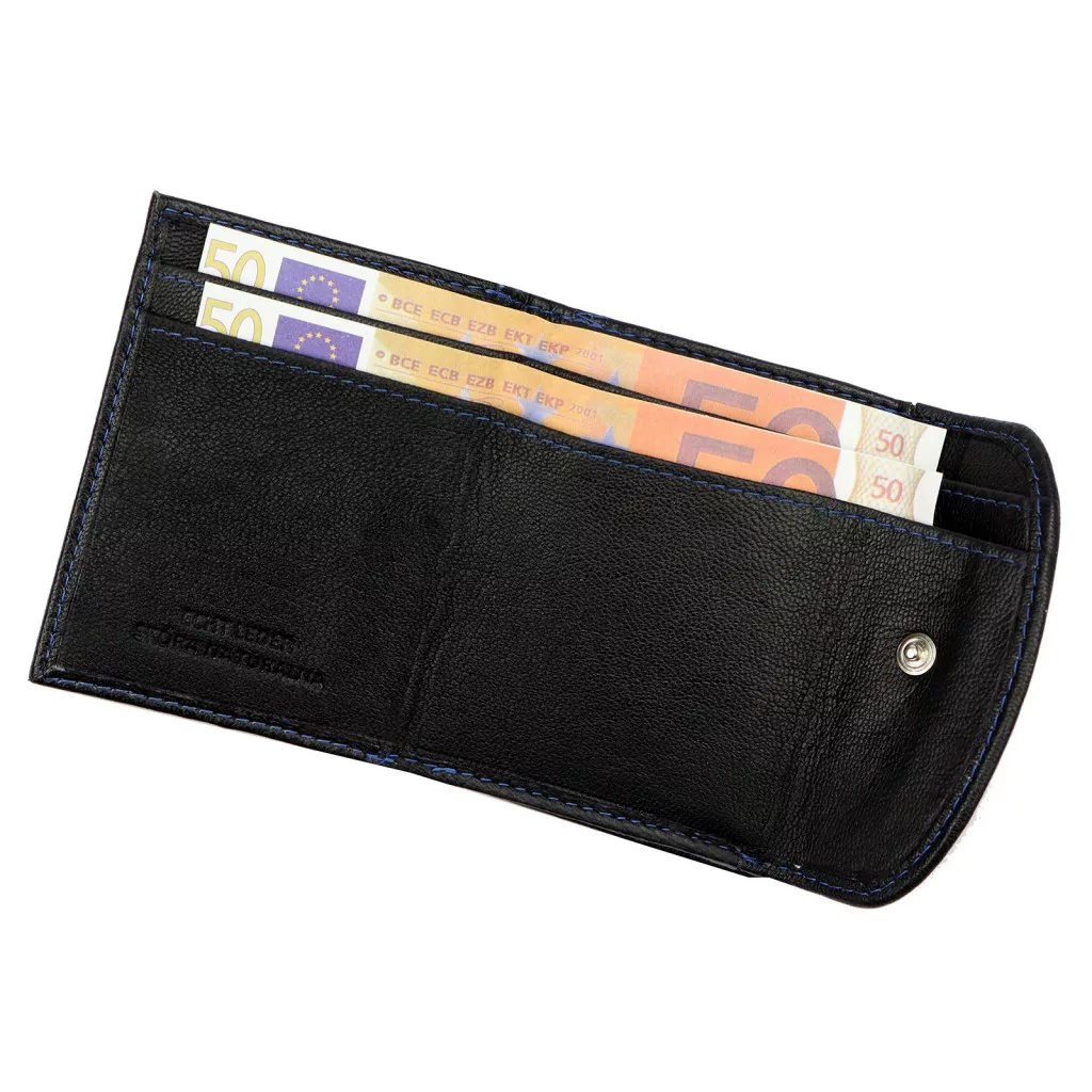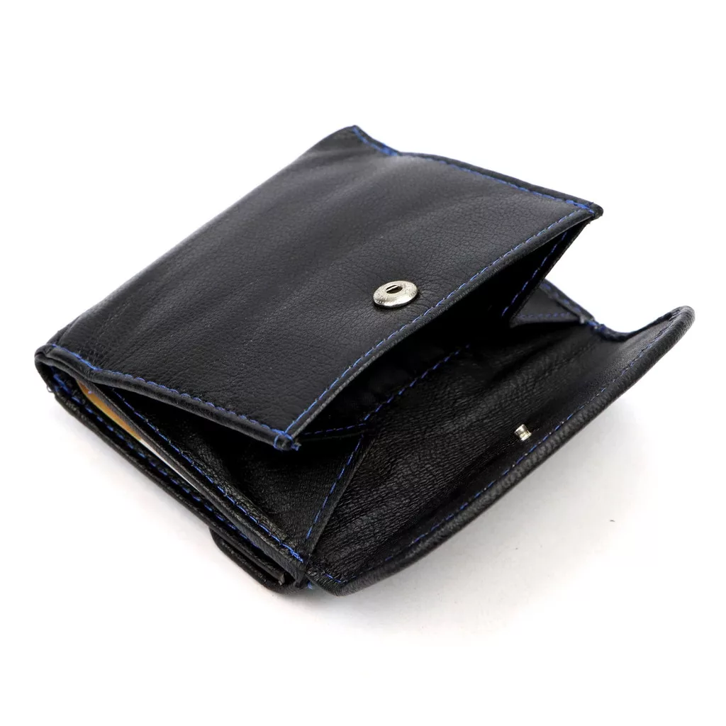Peňaženka vyrobená z pravej hovädzej kože je odolná a príjemná na dotyk a klasická čierna farba je vďaka modrému ozdobnému prešívaniujedinečná a moderná. Dve samostatné priehradky na bankovky pomáhajú s prehľadnou organizáciou, zatiaľ čo priehradka na mince so zapínaním na zips poskytuje bezpečné riešenie pre drobné. Tento model je perfektnou voľbou pre milovníkov minimalistického štýlu.