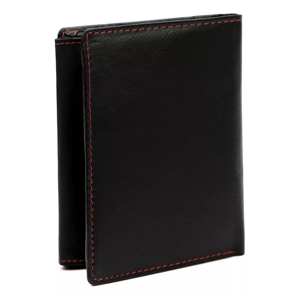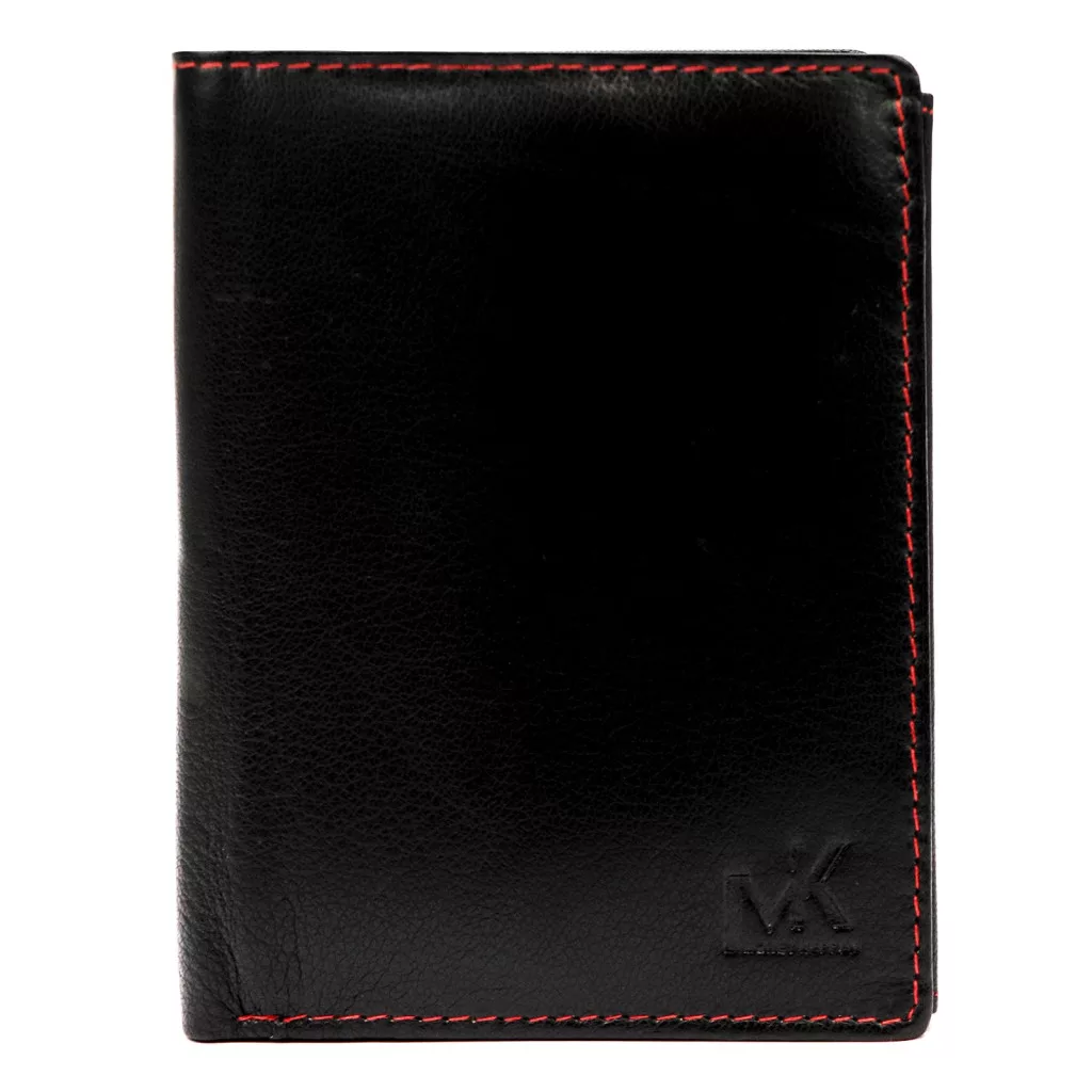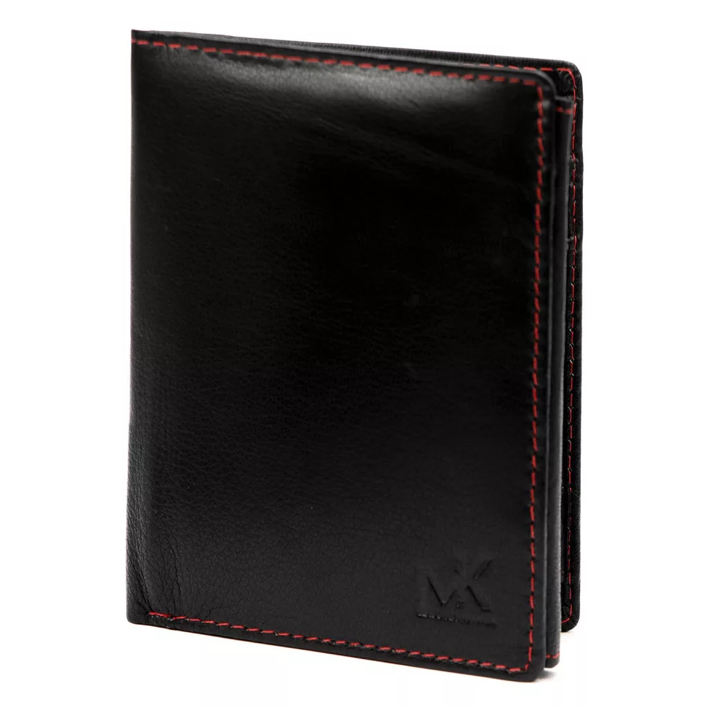 Čierna pánska peňaženka Money Kepper má elegantný a zároveň výrazný vzhľad vďaka lesklej, mäkkej na dotyk pravej koži, ktorá vyžaruje kvalitu a sofistikovaný štýl. Klasický čierny povrch je zvýraznený červeným ozdobným prešívaním pozdĺž okrajov, ktoré vytvára silný a dynamický kontrast s nadčasovým dizajnom. Peňaženka stojaci štýlmá praktický dizajn, vhodný na každodenné použitie, pričom jej vzhľad je elegantný a moderný.