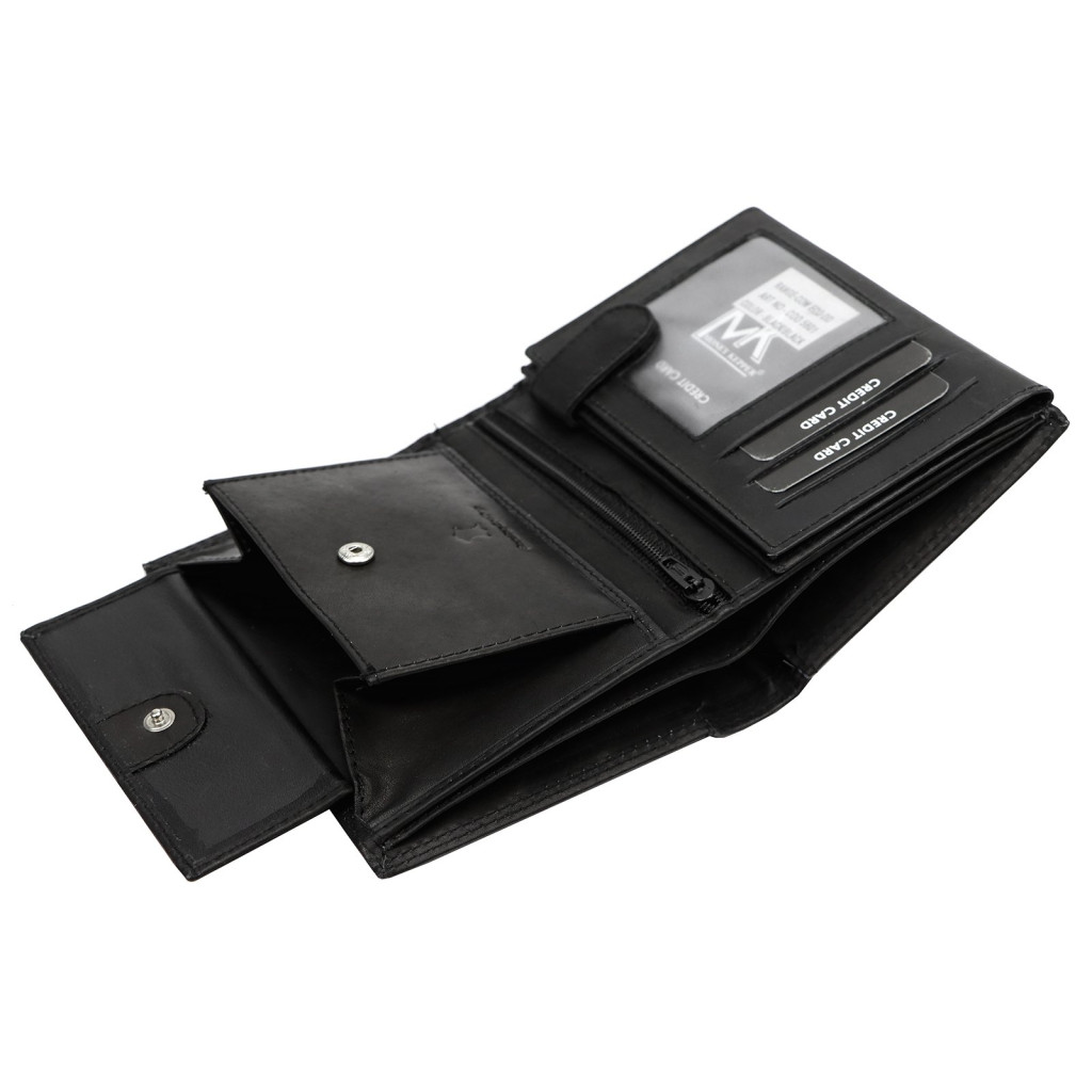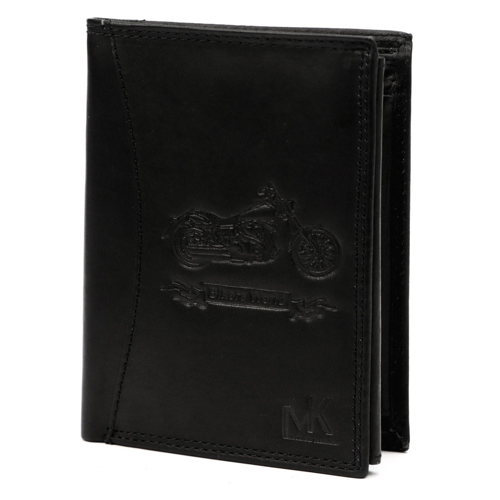 Pánska čierna hovädzia kožená peňaženka Money Keppermá čistý a výrazný vzhľad s decentným čiernym ozdobným prešívaníma motívom motocyklana prednej strane. Tento dizajn je ideálny pre tých, ktorí majú radi motorkársky životný štýl, slobodu a detaily vyžarujúce silu, pričom sa nevzdávajú nadčasovej elegancie klasickej čiernej kože. Pravá hovädzia koža je odolná a zároveň príjemná na dotyk, vďaka čomu je spoľahlivým spoločníkom na každodenné používanie z dlhodobého hľadiska.