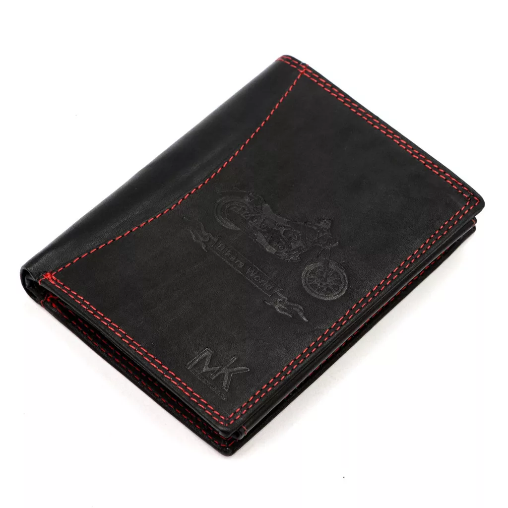 Pánska kožená peňaženka Money Kepper CDD 5601 BIKE čierno-červená s motívom motorky 10 x 13 x 2,5 cm