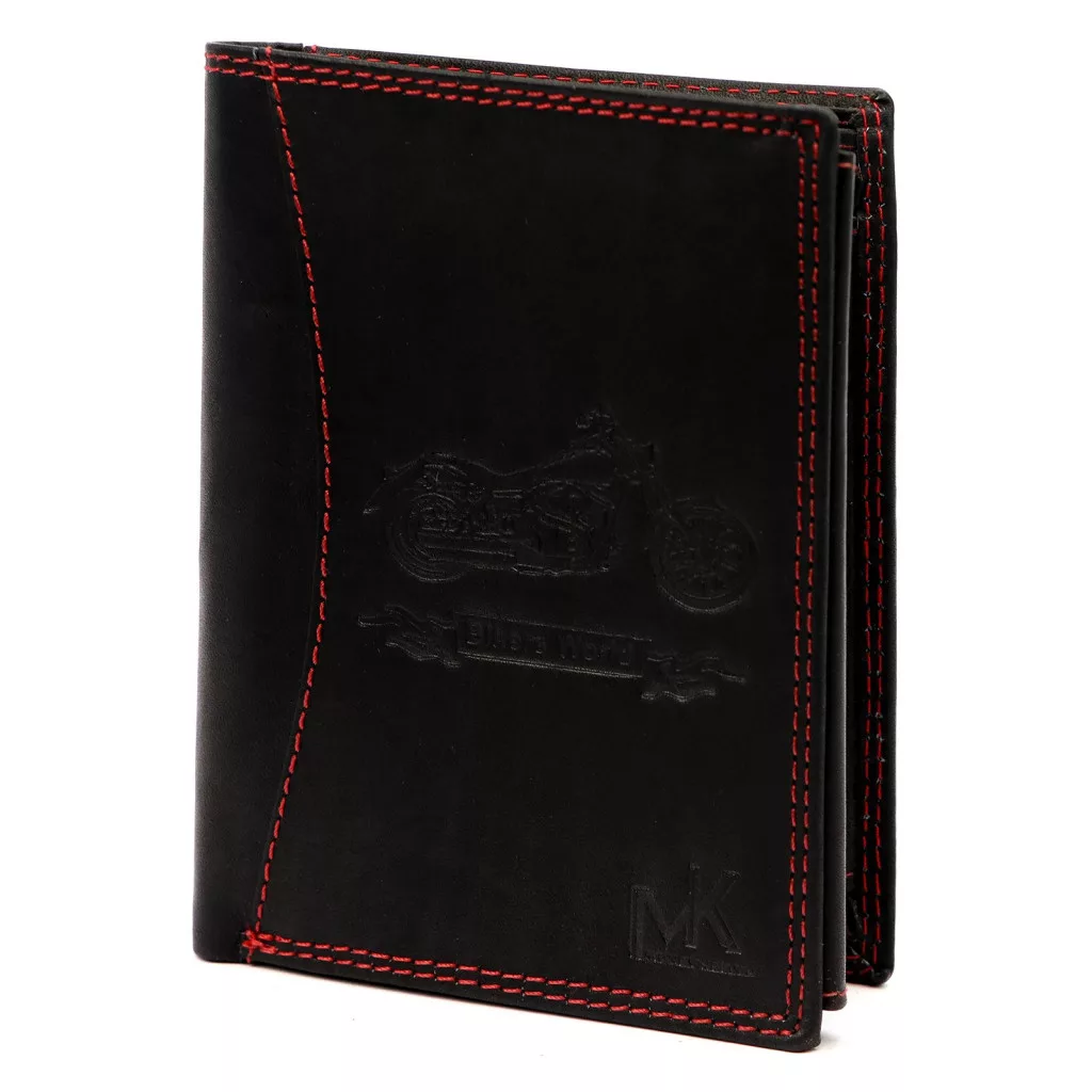 Ak hľadáte čiernu pánsku peňaženku s charakterom, motorkárskym štýlom, ktorú skutočne odlišuje červené ozdobné prešívanie, tento kúsok je perfektnou voľbou. Objednajte si teraz a zvýraznite svoj štýl štýlovým, kvalitným koženým doplnkom!