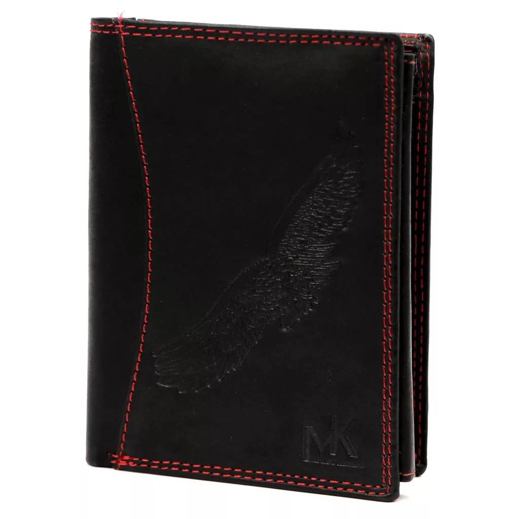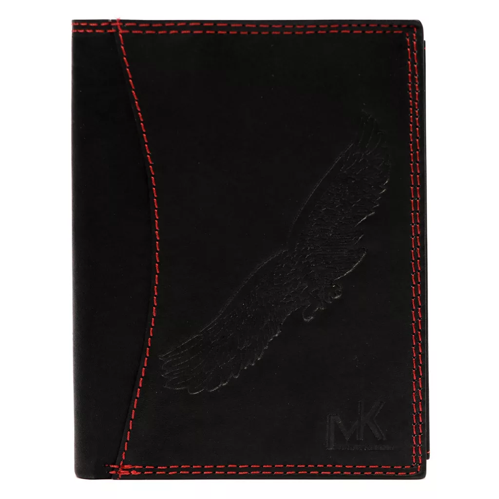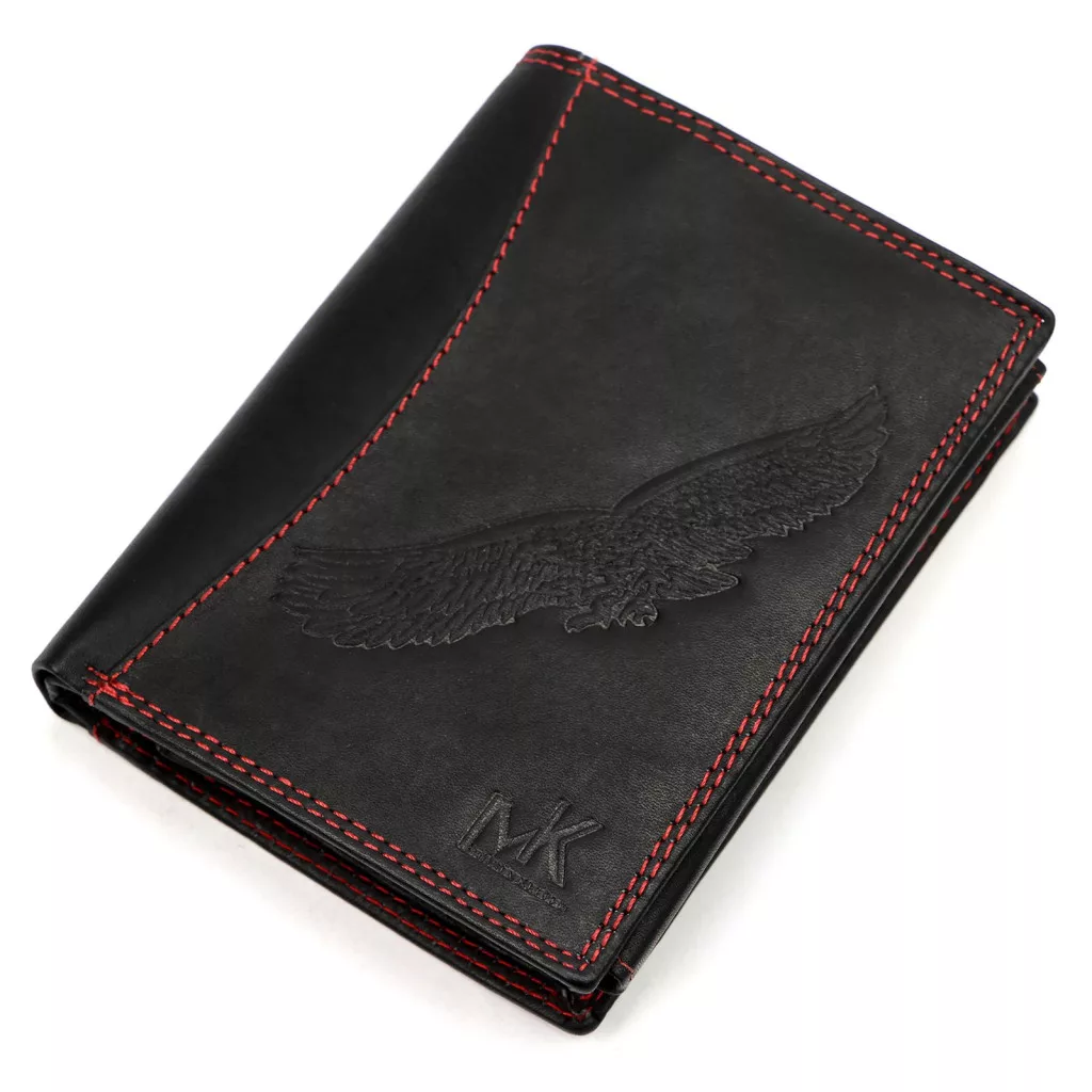 Pánska kožená peňaženka Money Kepper CDD 5601 BIRD čierno-červená, motív orla 10 x 13 x 2,5 cm