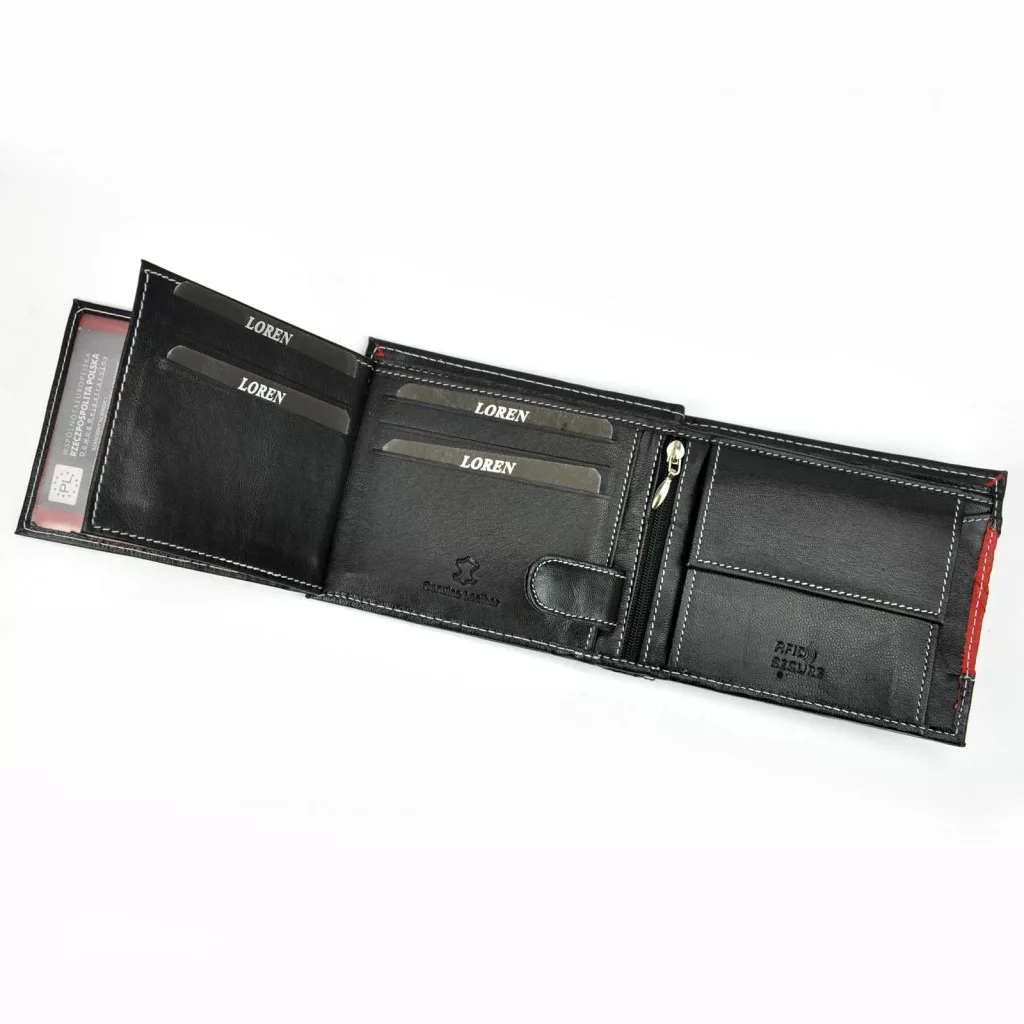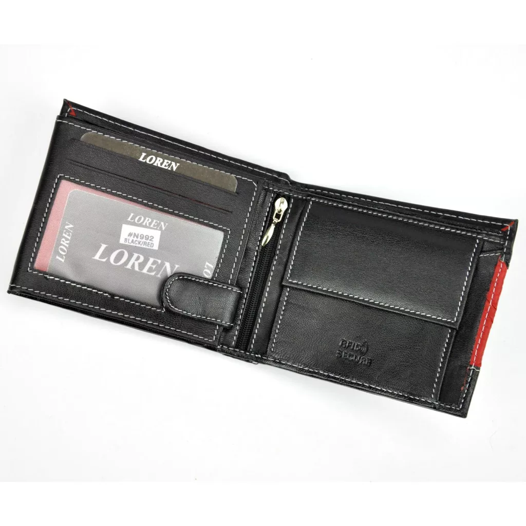 Pánska peňaženka Loren N992-DDG z čiernej hovädzej kože 12,8 x 10,5 x 2,5 cm
