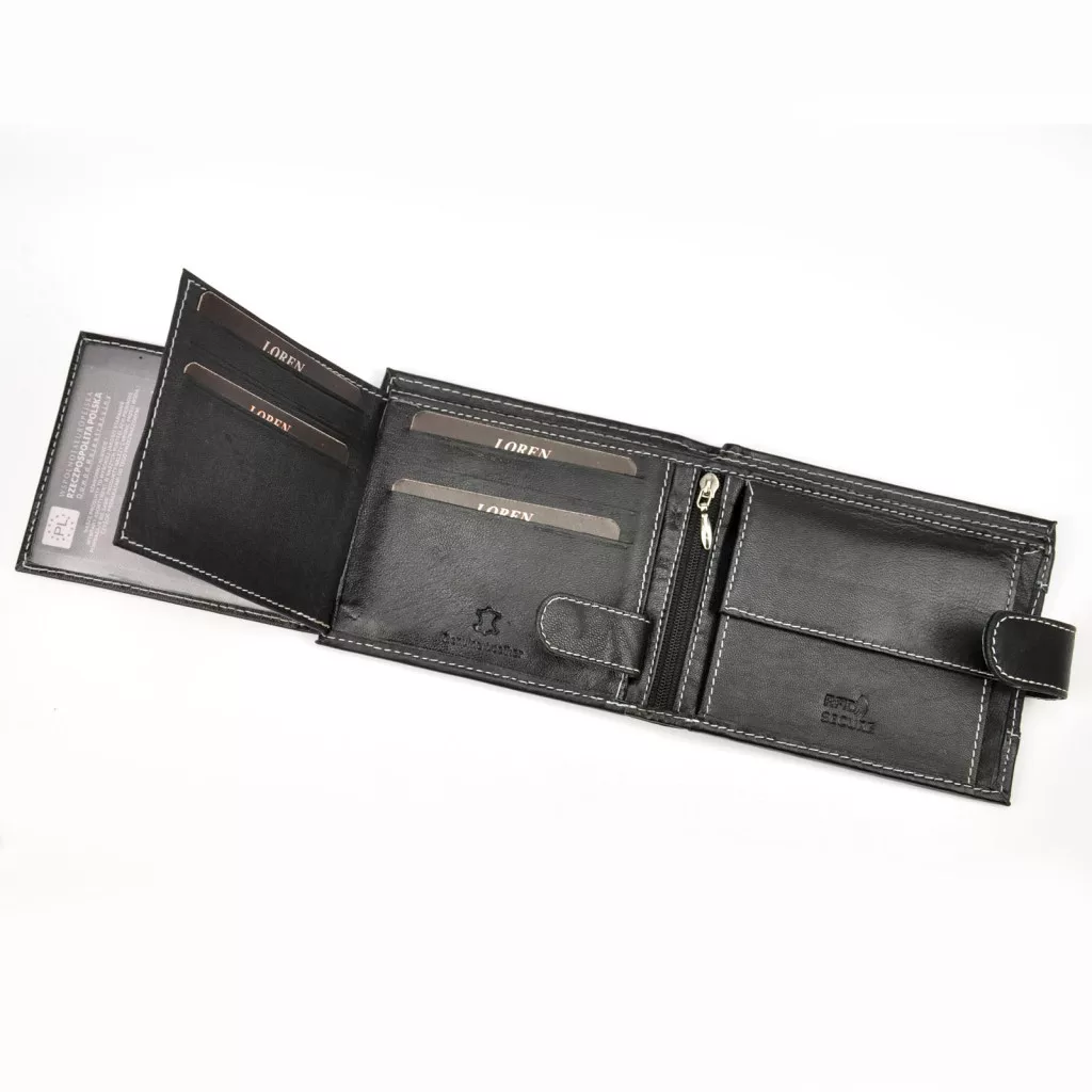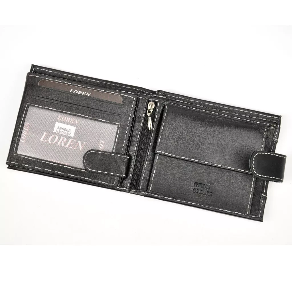 Pánska peňaženka Loren N992L-DDG z čiernej hovädzej kože 13 x 10,8 x 2,2 cm