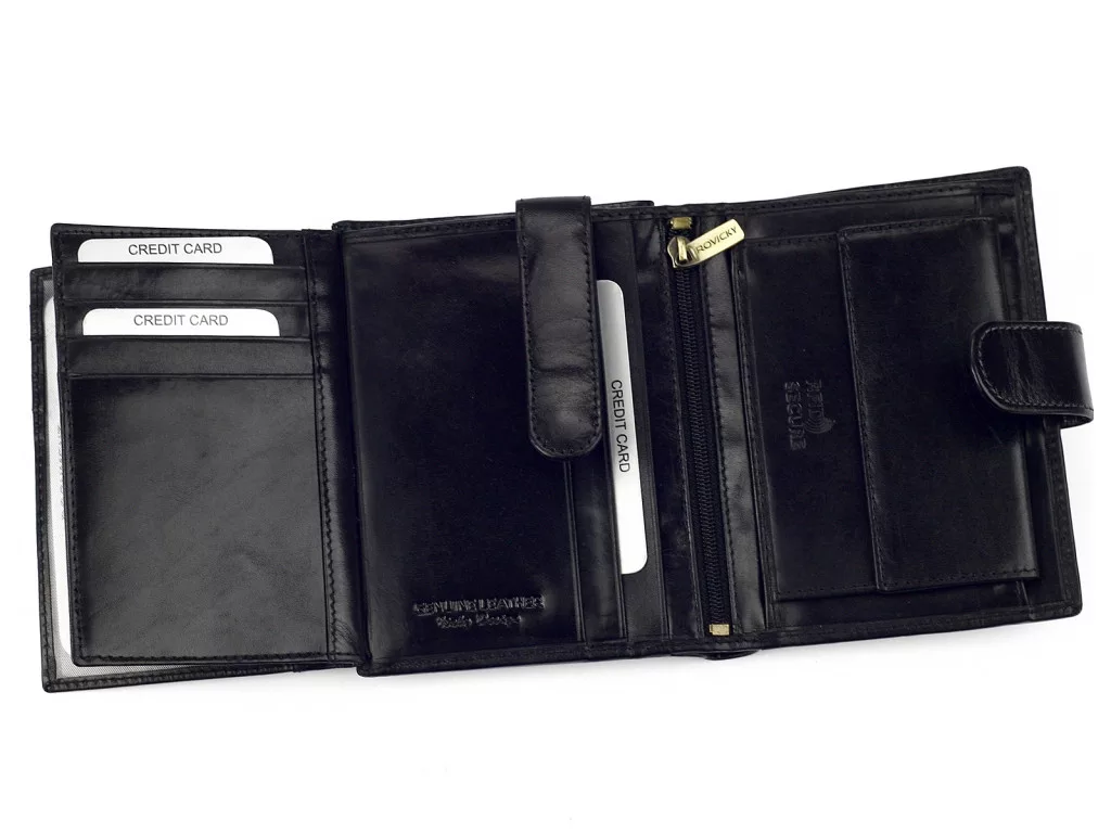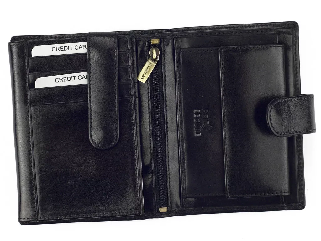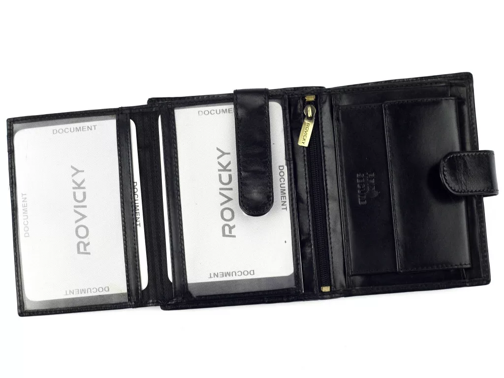Pánska peňaženka Rovicky N104L-RVT RFID čierna z hovädzej kože 9,5 x 12,5 x 2,5 cm