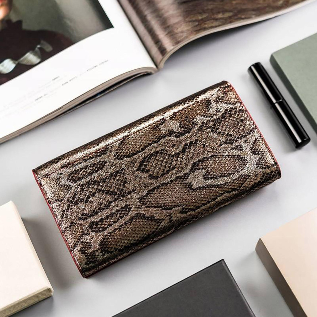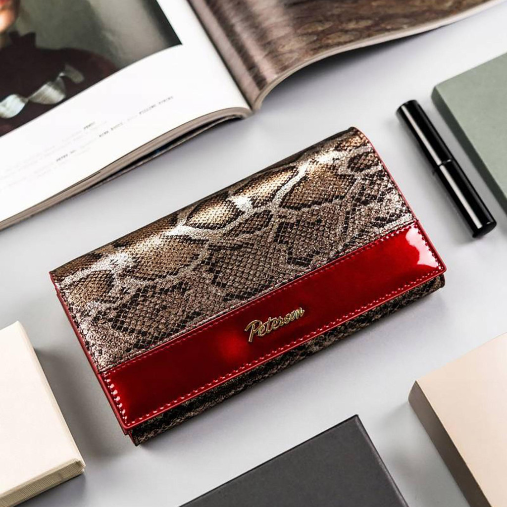 Peterson PTN BS-411 SNAKE-2 červená hovädzia koža dámska peňaženka 17,5x9,5x3 cm