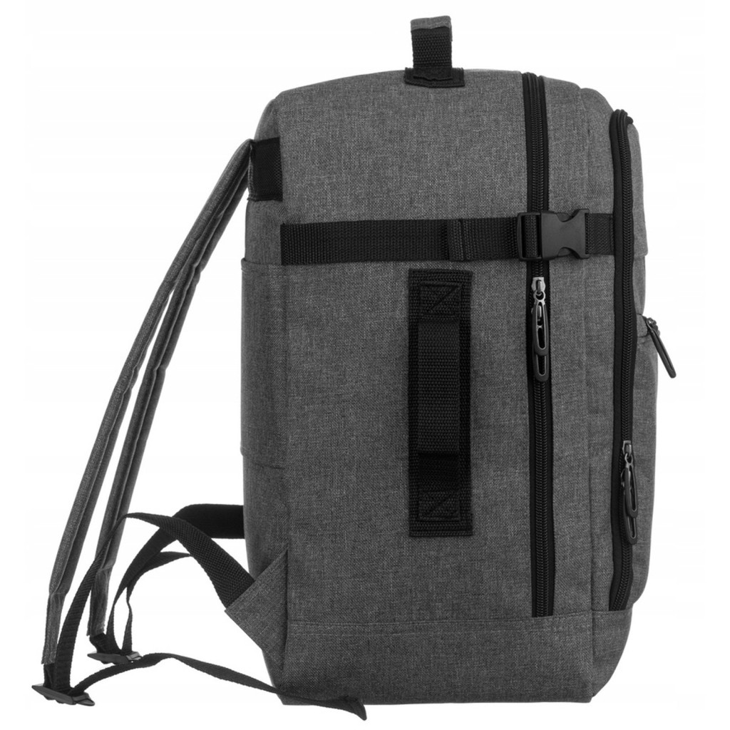 Sivý dámsky batoh Peterson PTN PP-TOK-T je praktickou a elegantnou voľbou na cesty, pretože spĺňa požiadavky na veľkosť kabíny spoločností Wizz Air a Ryanair, takže ho možno vziať na palubu aj ako príručná batožina. Je vyrobený z odolného polyesterového materiálu, ktorý sa ľahko čistí a je odolný. Batoh má dvojkomorový dizajn, takže umožňuje organizované skladovanie a vnútorné vrecko na zips a držiak na mobil pomáhajú bezpečne umiestniť menšie predmety. Vrecko na zips na prednej strane poskytuje rýchly prístup k najdôležitejším veciam. Kufor má dizajn rukoväte a bočné popruhy s prackami pre stabilitu a ľahké cestovanie.