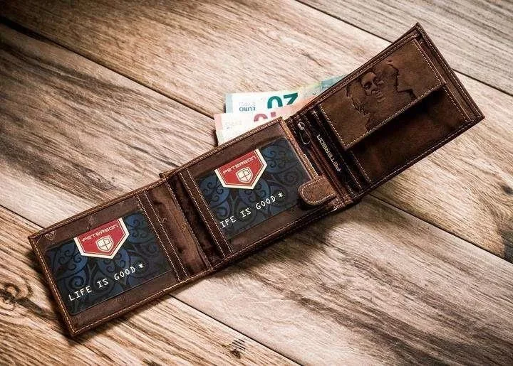 Darčeková sada pánskej peňaženky a vreckového noža Peterson PTN ZM33 z hnedej kože je charakteristická a štýlová kombinácia, ktorá spája kvalitné kožené doplnky s klasickým multifunkčným vreckovým nožom. Prírodná hnedá koža, jedinečné reliéfne detaily a vreckový nôž s drevenou rukoväťou tvoria harmonický celok, vďaka čomu je sada vynikajúcou voľbou ako darček, tak aj na každodenné použitie.
