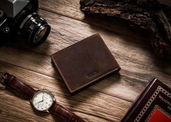 Vlastnosti koženej peňaženky bez ramienok, horizontálna orientácia a tenký dizajn. Vybavená RFID ochranou, ktorá pomáha chrániť údaje z bankových kariet a identifikačných kariet pred neoprávneným bezkontaktným čítaním.