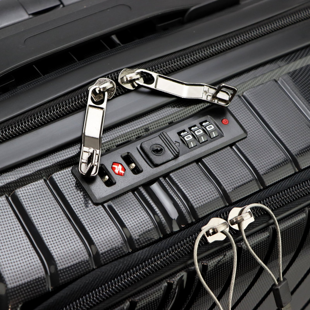 Stredne veľký kufor značky Pierre Cardin. Stworzona z twowrywa ABS, garancia spoľahlivej ochrany przewożonych objektov. Budowa walizki jest dwukomorowa, wykończona złatłą podszewką. Komora główna uzaczona jest w elastyczne pasy zabezpieczające ubrania przed przemieszczaniem, zaś w komorze przedniej znadziemy sprzeszący dedykowaną na laptop i kieszeń na drobiazgi zapinaną na suwak. Walizka je vybavená štyrmi dvojitými, otočnými kolesami, wysuwany rukoväťou a gumovými rączki, čo uľahčuje przemieszczanie się z bagagem. Ponadto posiada zabezpieczenie w postaci zamka szyfrowego impasibijającego osobom niepożądanym ość do wnętzera. Walizki ozdabia metalowa plakieta s logom Pierre Cardin.