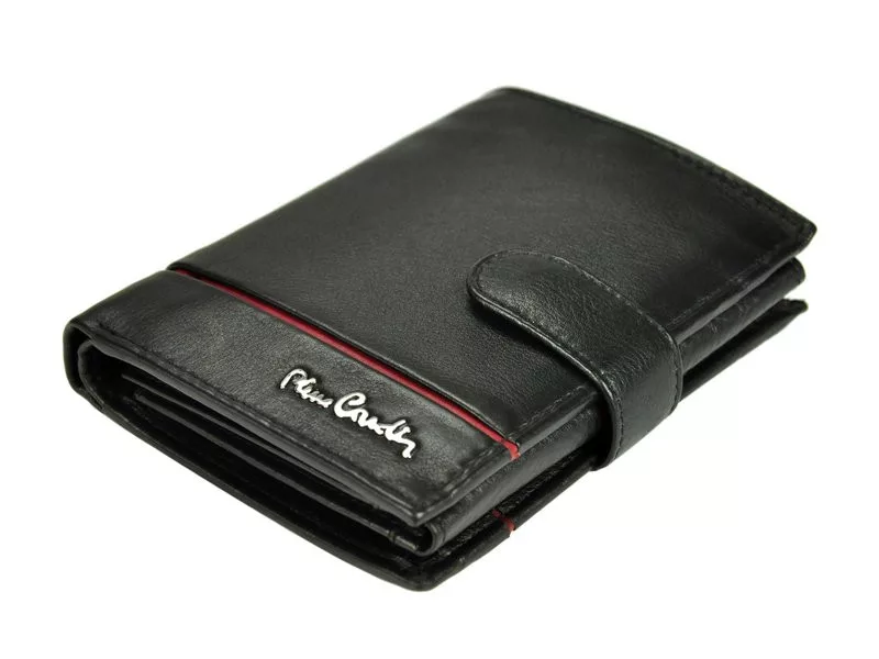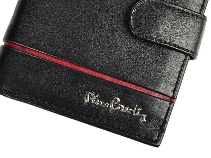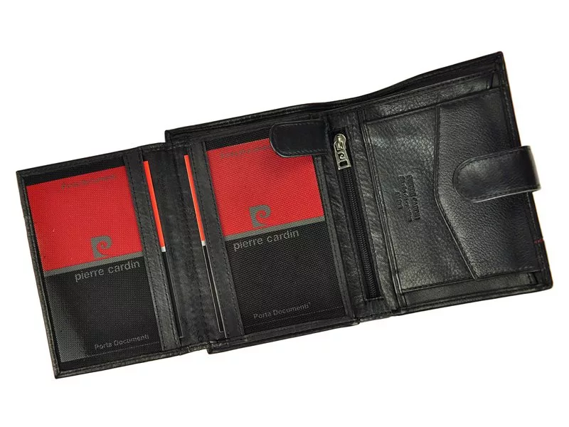 Čierna pánska kožená peňaženka Pierre Cardin SAHARAspája eleganciu a funkčnosť zaisťuje to kvalitný materiál hovädzej kože a praktické vnútorné usporiadanie. Táto peňaženka je ideálnou voľbou pre každodenné použitie, keďže má okrem najmodernejších technických riešení aj klasický nadčasový dizajn.