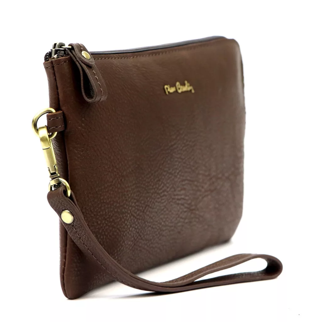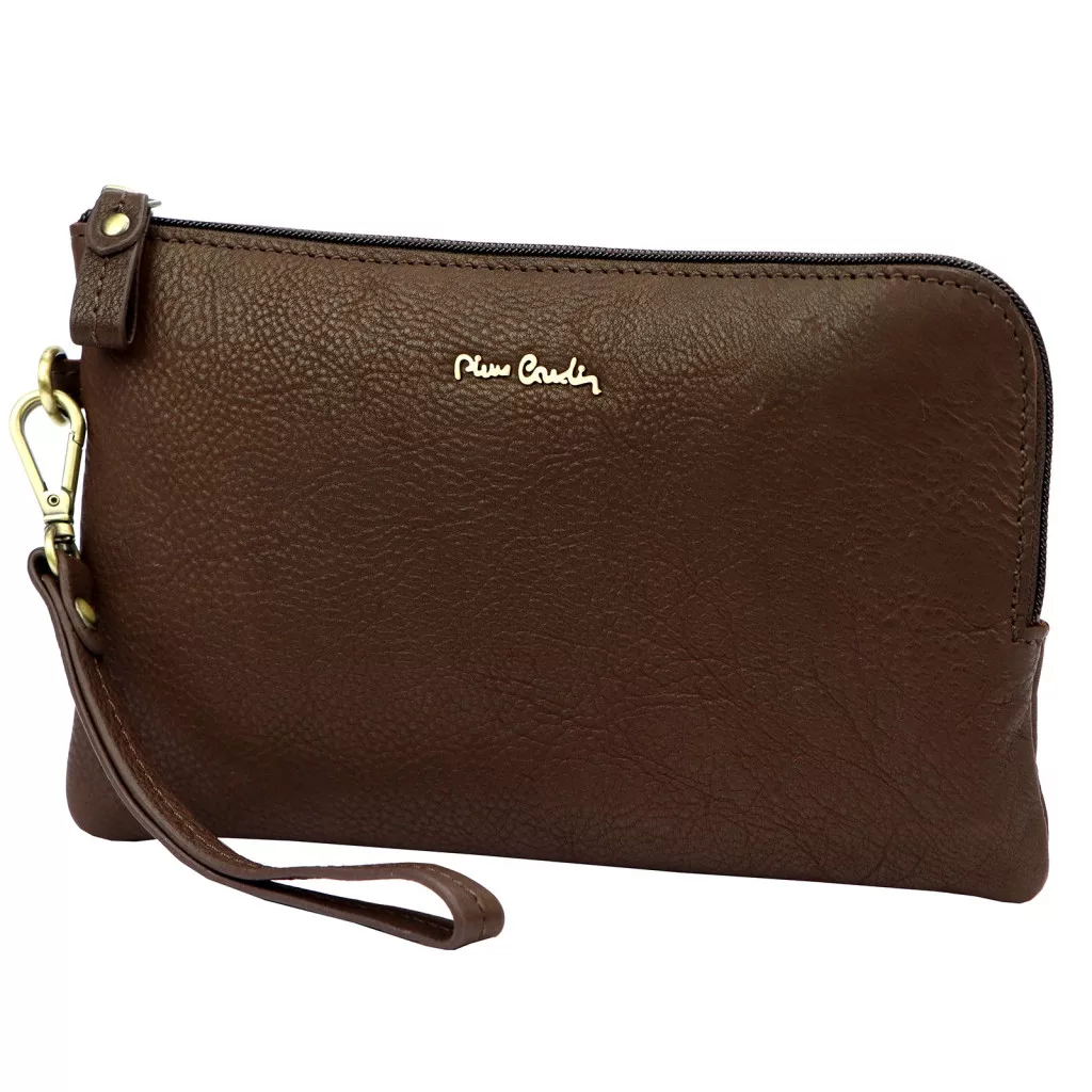 Pánska kožená taška do auta Pierre Cardin TILAK112 12423 hnedá je elegantný, kompaktný a praktický doplnok, ktorý dokonale zapadne do každodenného života mužov. Kvalitná pravá koža zaisťuje odolnosť a prémiový vzhľad. Jednoduchý jednokomorový dizajn a zadné vrecko na zips pomáhajú usporiadať najdôležitejšie veci, zatiaľ čo karabínka, odnímateľný popruh na zápästie zaisťuje pohodlné nosenie.