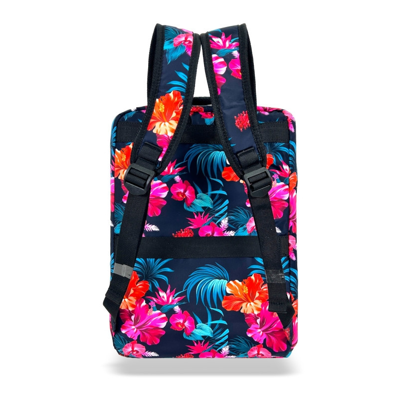 Príručný batoh s tropickou kvetinovou potlačou a praktickým dizajnom, ideálny na cestovanie lietadlom, poznávanie pamiatok a krátke výlety. Veselý, no harmonický vzor dodáva celkový svieži a ženský efekt, zatiaľ čo vodeodolný materiál poskytuje spoľahlivú ochranu pri každodennom používaní.