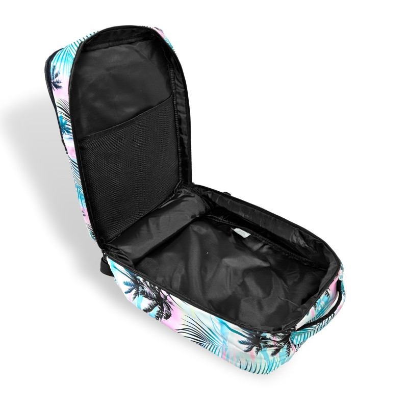 Príručný batoh so vzorom paliem, ktorý je ideálnou voľbou na cestovanie lietadlom, výlety do mesta a krátke víkendy výlety vďaka praktickému dizajnu. Vodoodpudivý materiál pomáha chrániť obsah tašky počas každodenného používania, zatiaľ čo kvetinový vzor dodáva celkovému vzhľadu svieži letný nádych.