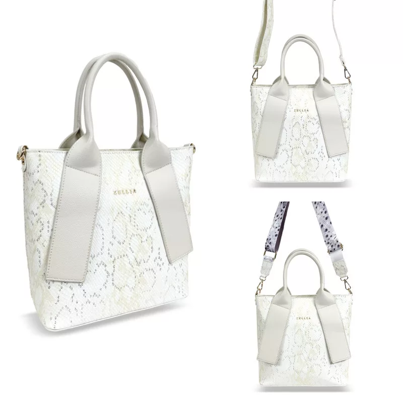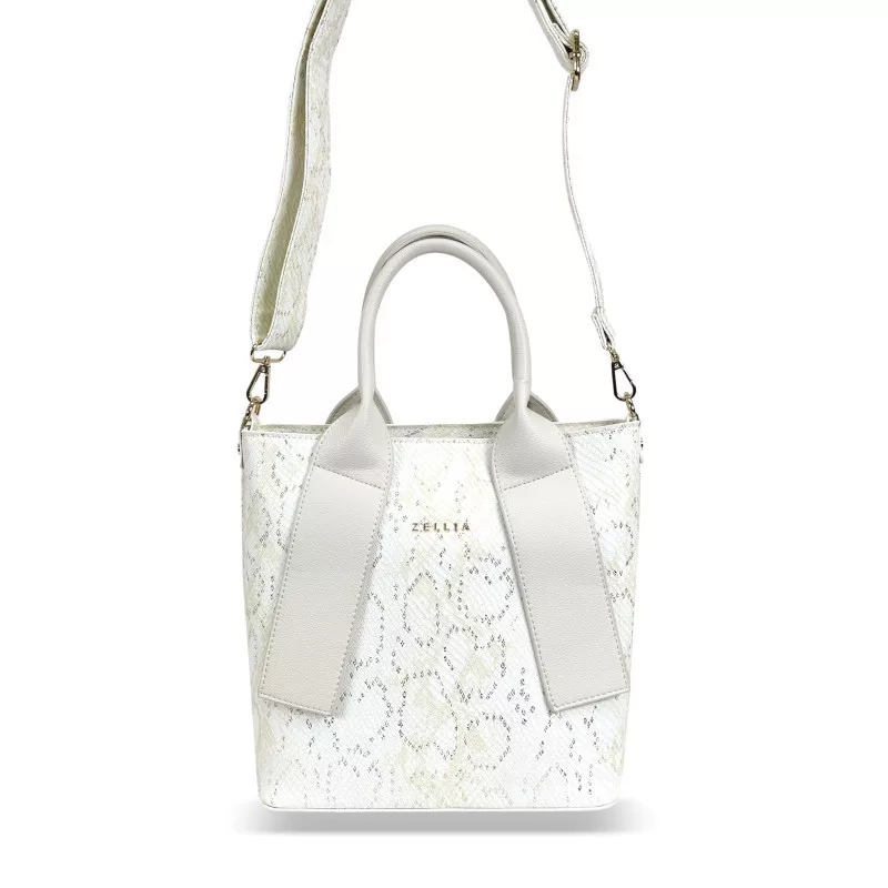 Zellia vzor hadej kože biela dámska kabelka 26 × 25 cm
