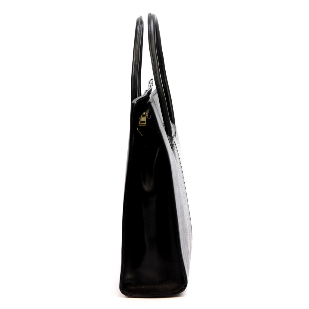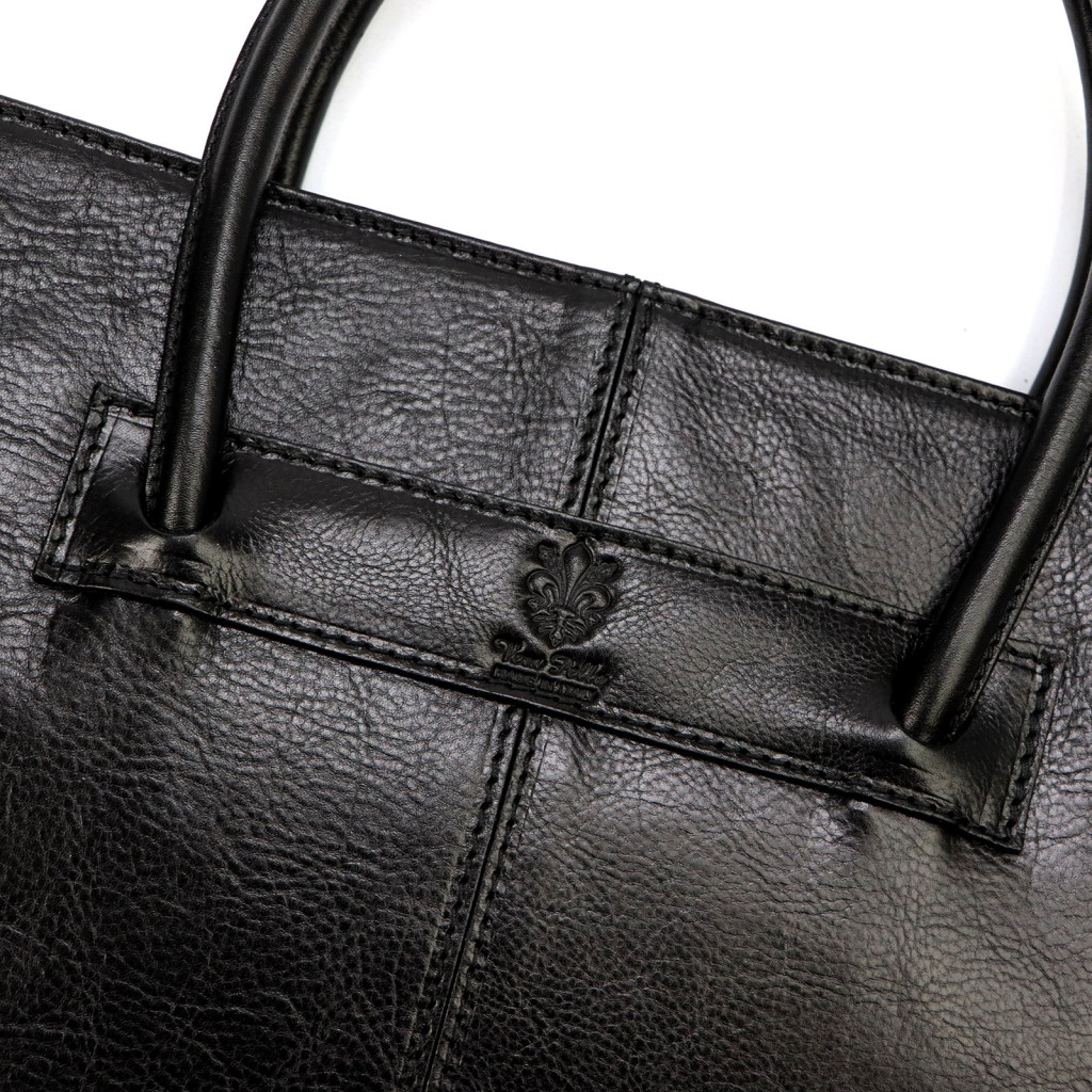 Taška je vyrobená z prvotriednej, hodvábne lesklej hovädzej kože. Jej hladký, jemne lesklý povrch vytvára sofistikovaný efekt a prírodná koža poskytuje odolnosť a elegantný vzhľad. Podľa feng shui sa čierna farba spája s múdrosťou, silou a sebavedomím a ako nadčasový odtieň dodáva taške jednoznačný, profesionálny charakter. Reliéfne logo je jemným, sofistikovaným detailom a nitovaná základňa chráni tašku, keď je položená na zemi.