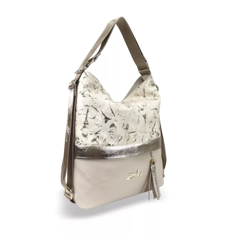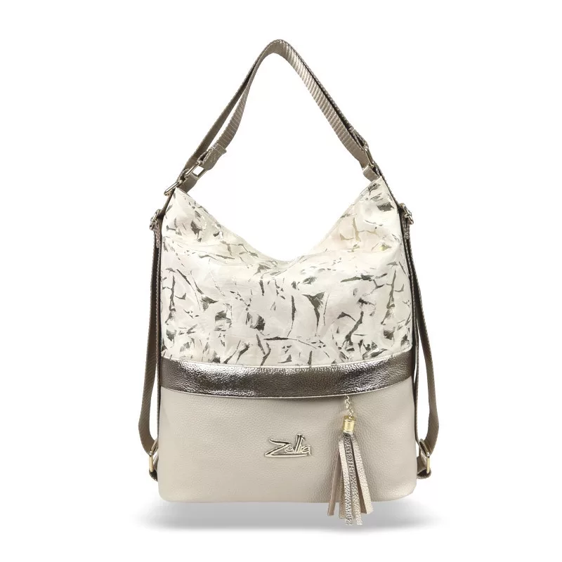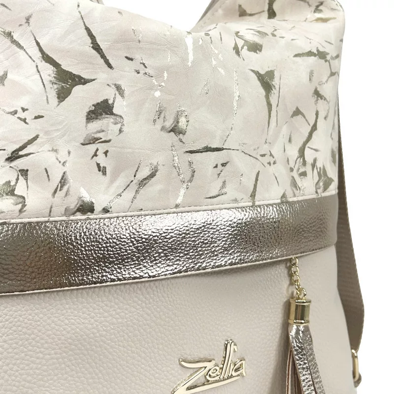 Dámska béžovo-zlatá taška cez rameno Zellia 24040, ktorú možno premeniť na batoh, 37 x 32 x 12 cm