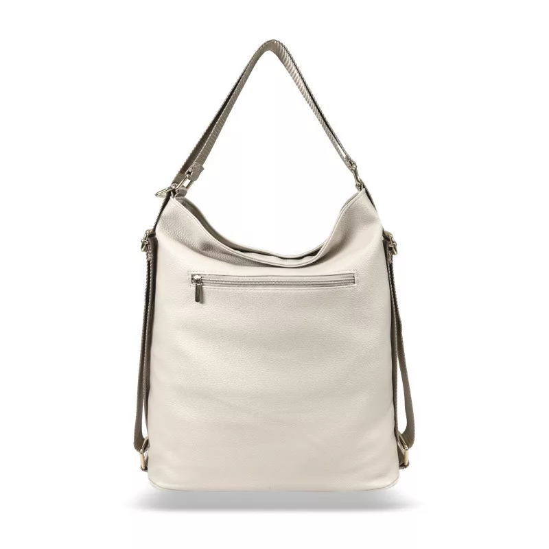 Dámska taška cez rameno Zelliamodel 24040 kombinuje štýlový vzhľad a praktické využitie. Béžovo-zlatá farebná schéma poskytuje decentný, no zároveň pútavý vzhľad, ktorý je ideálny na každodenné nosenie, do kancelárie alebo dokonca na ležérne outfity. Tento model sa dá jedným pohybom premeniť na batoh, vďaka čomu je ideálnou voľbou pre tých, ktorí si cenia všestrannosť a pohodlie.