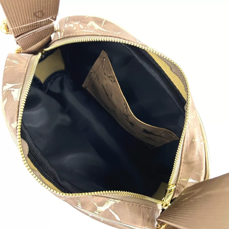 Zellia ZLB303 hnedo-zlatý mramorový vzor Dámska crossbody kabelka s elegantným, decentným leskom predstavuje dokonalú rovnováhu sofistikovaného štýlu a prírodných textúr. Vďaka špeciálnemu použitiu materiálov a praktickému dizajnu je ideálnou voľbou na každodenné nosenie aj príležitosti.