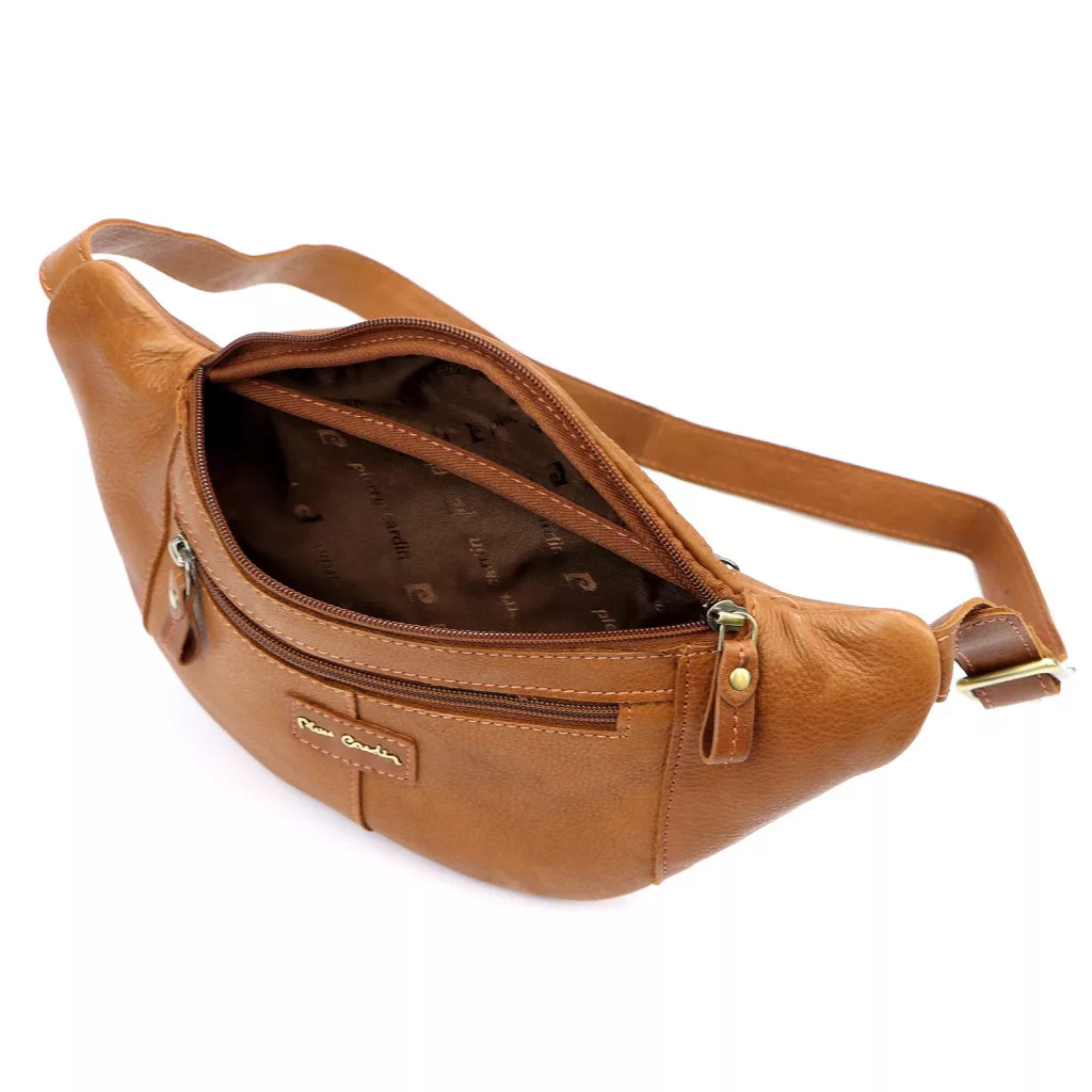 Dámska hnedá kožená kabelka na opasok Pierre Cardin TILAK112 9323 34 x 15 x 8 cm