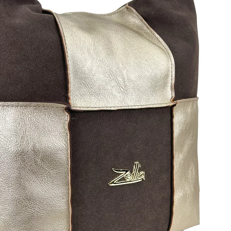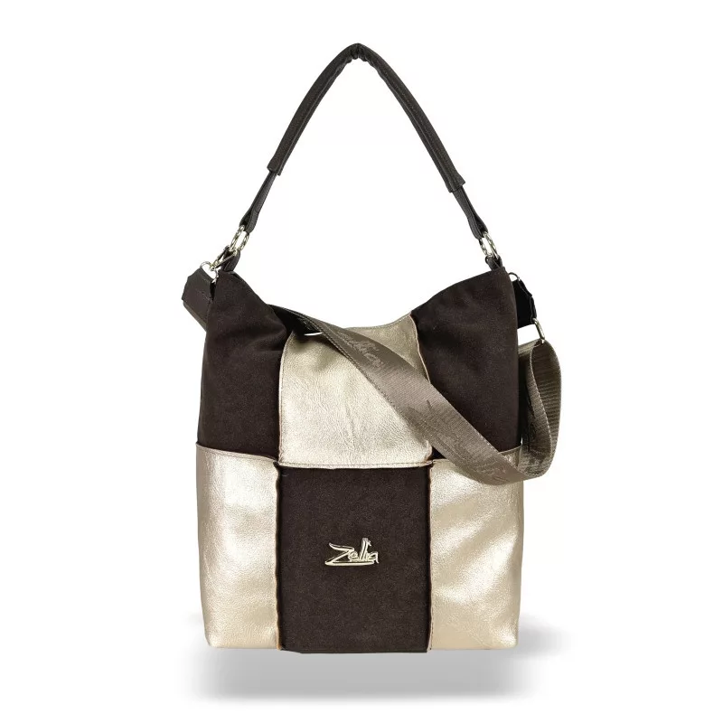 Zellia 19141 je elegantná a moderná dámska kabelka cez rameno, ktorú ozvláštňuje harmonická kombinácia hnedých a zlatých odtieňov. Kombinácia mäkkých hnedých povrchov pripomínajúcich semiš a lesklých zlatých panelov vytvára ženský a sofistikovaný vzhľad. Jej dizajn je zbaliteľný a pohodlný, vďaka čomu je ideálnou voľbou pre každodenný život aj mestské aktivity.