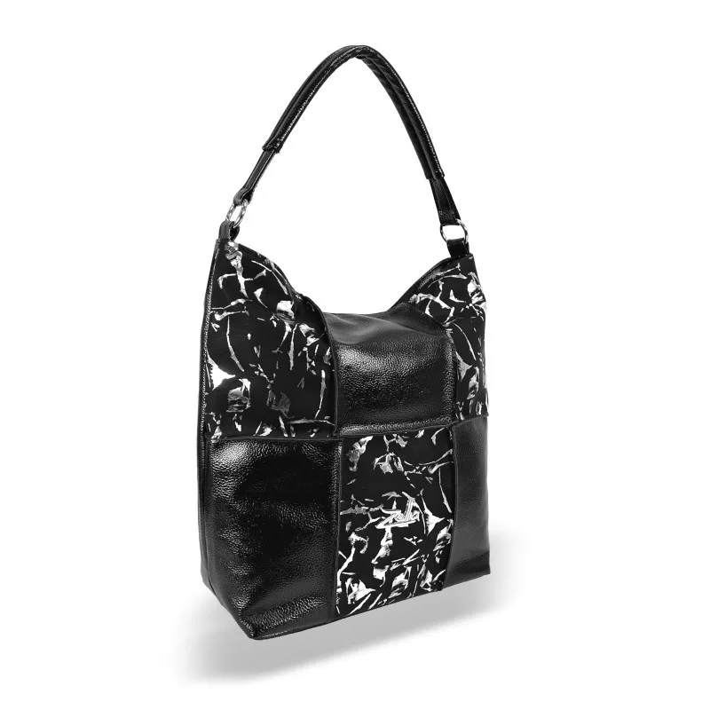 Dámska kabelka cez rameno Zellia 19141 v čierno-striebornej farbe s mramorovým vzorom, 37 x 30 x 13,5 cm