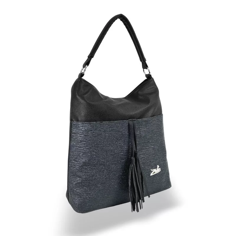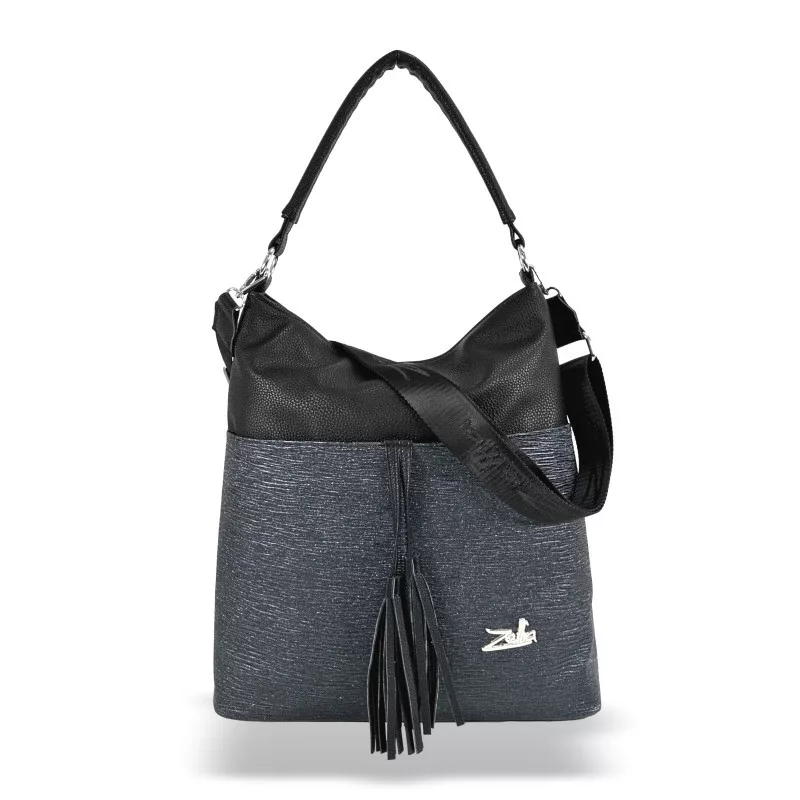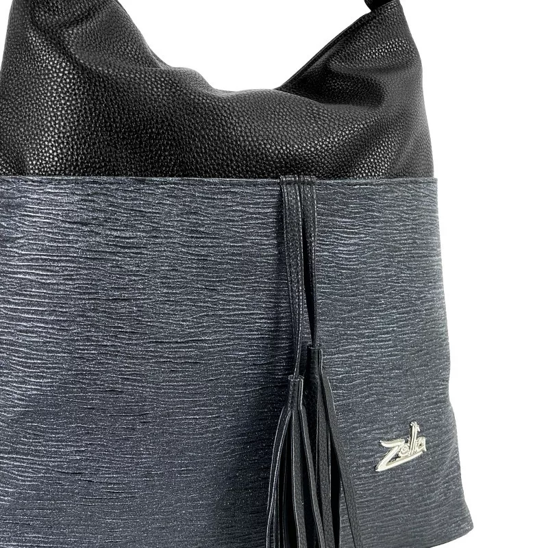 Dámska kabelka cez rameno Zellia 21031 v čierno-grafitovej farbe, 41 x 38 x 10,5 cm