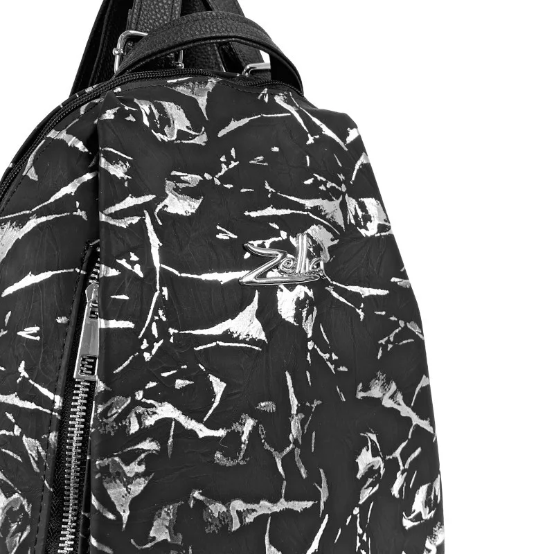 Dámska kabelka cez rameno Zellia 24147 čierna so strieborným mramorovým vzorom 32 x 29 x 13 cm