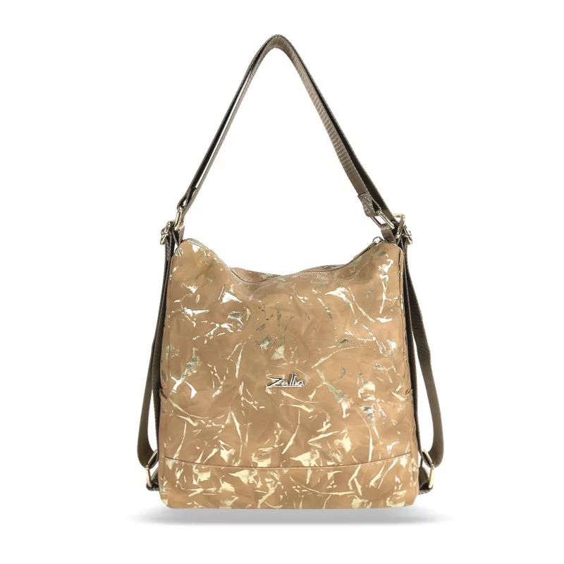 Dámska kabelka cez rameno Zellia Zlb317 s ťavovo-zlatým mramorovým vzorom, ktorú možno premeniť na batoh, 31 x 28 x 12,5 cm