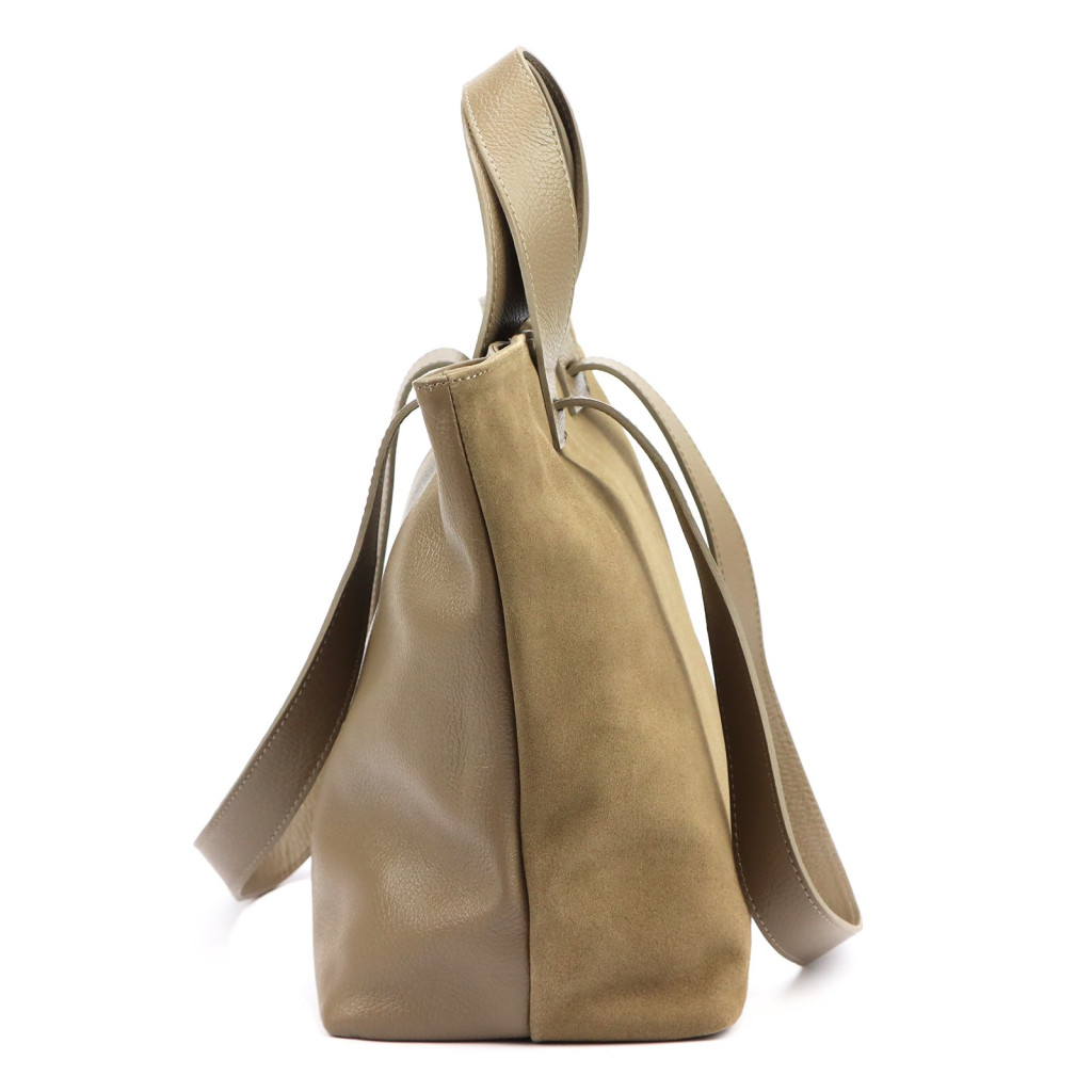 Béžová kabelka Luka 25-077 je dokonalou kombináciou prirodzenej elegancie a modernej funkčnosti. Kombinované použitie materiálov – povrch z vláknitej kože s efektom semišu a detaily zo zrnitej hovädzej kože – jej dodáva jemný, ženský charakter a zároveň poskytuje prémiový a odolný pocit. Jej čisté línie a priestranný dizajn z nej robia ideálnu voľbu na každodenné použitie, či už do práce alebo na bežné nosenie.