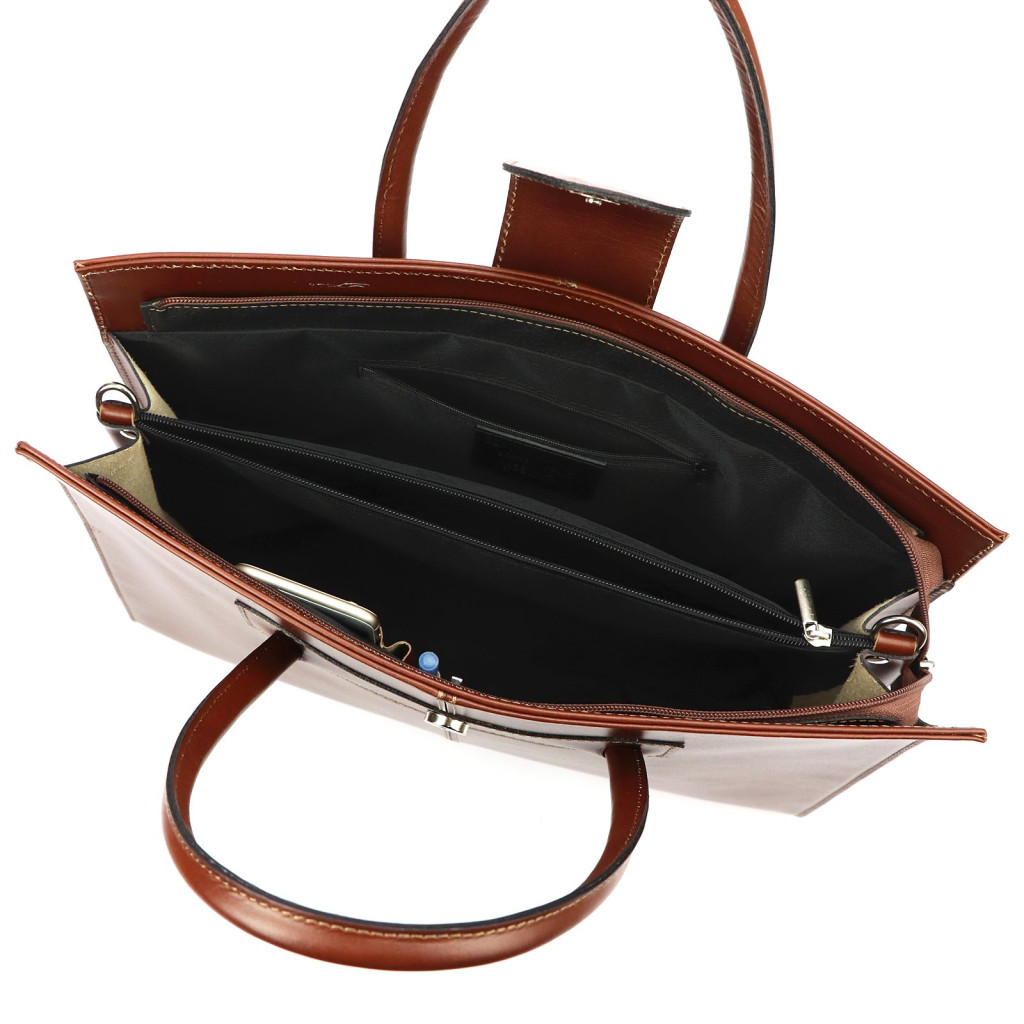 Camilla 778je elegantná a sofistikovaná dámska aktovka, ktorá kombinuje profesionálny vzhľad s praktickou funkčnosťou. Vyrobená z vysoko kvalitnej hovädzej kože, je odolná, nadčasová a má prémiový vzhľad. Jej klasická hnedá farba poskytuje teplý, ženský a štýlový vzhľad. Jej pevné bočné steny poskytujú stabilné držanie, takže dokumenty, nástroje a inteligentné zariadenia uložené v nej vždy zostanú upratané a v bezpečí. Premyslené vnútorné usporiadanie tašky vám umožňuje jednoducho usporiadať si každodenné príslušenstvo – či už dokumenty, notebooky, tablety alebo iné technické príslušenstvo.
