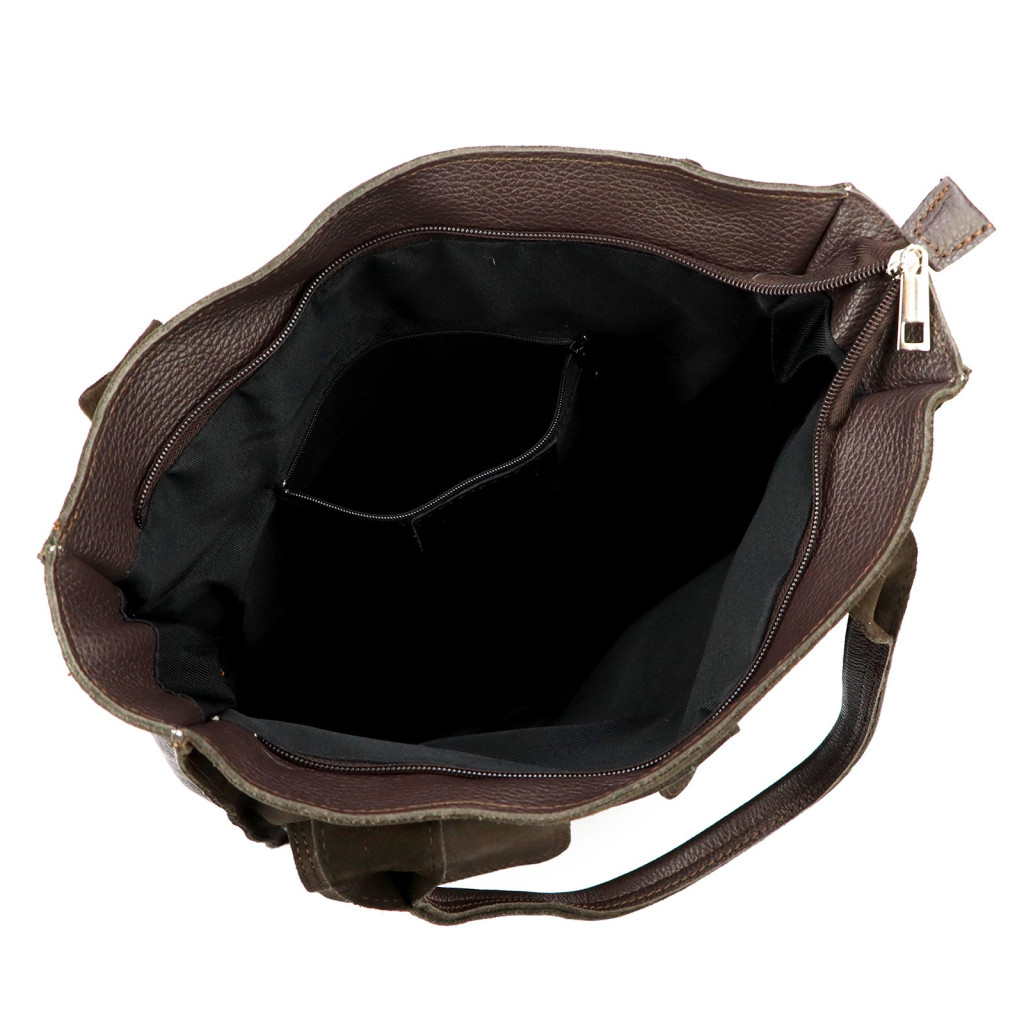 Dámska kožená kabelka cez rameno Angelo 01-001-2 v hnedej farbe je dokonalou kombináciou ležérnej elegancie a praktickej funkčnosti. Je vyrobená z prvotriednej pravej hovädzej kože, ktorá vytvára osobitý kontrast so stretnutím mäkkých semišových povrchov a lesklých, zrnitých kožených prvkov. Hlboké tóny hnedej vytvárajú priateľský, prirodzený vzhľad, ktorý podľa feng shui vyžaruje stabilitu, spoľahlivosť a dôveru - ideálny spoločník pre každodenné výzvy. Prírodné farby a textúry zohrávajú významnú úlohu v trendoch roku 2025, vďaka čomu je tento model štýlovou, modernou a zároveň nadčasovou voľbou.