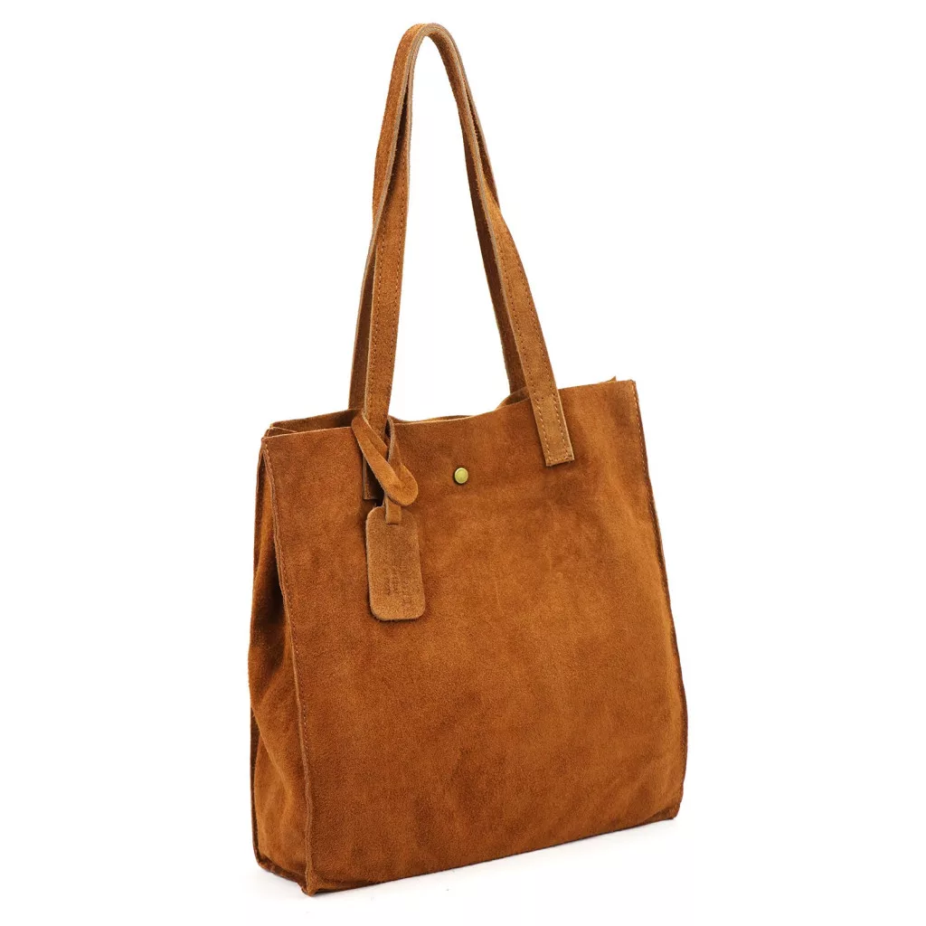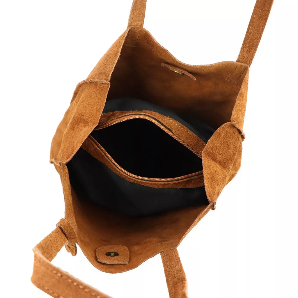 Dámska semišová kožená kabelka cez rameno Luka 25-041 Cognac - štýl a praktickosť v jednom