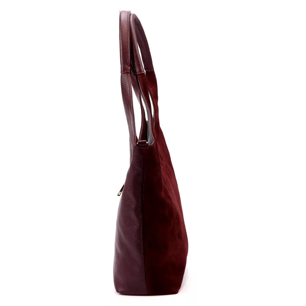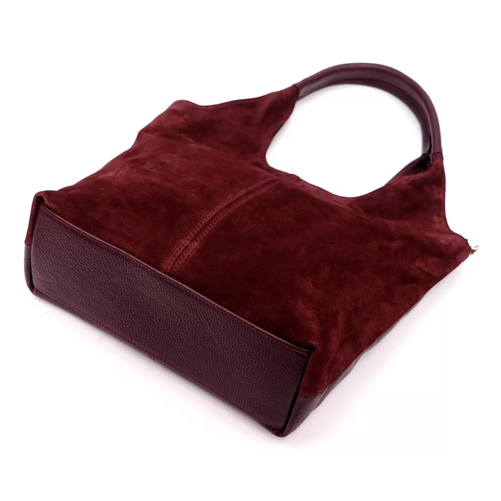 Štýl modelu je elegantný, čistý a moderný, ktorý je ešte výnimočnejší vďaka zamatovému odtieňu bordovej farby. Podľa feng šuej je bordová farba symbolom sily, vitality a sebavedomia, takže táto kabelka je perfektnou voľbou pre tých, ktorí majú radi ženské, výrazné a zároveň harmonické doplnky. Jemný kontrast medzi semišom a štruktúrovanou kožou ešte viac umocňuje luxusný efekt.