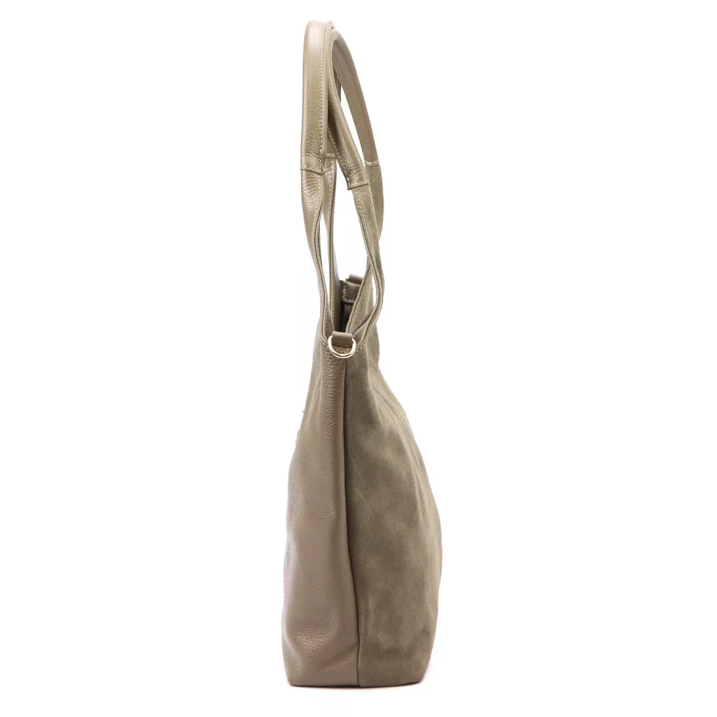 Podľa feng shui symbolizuje taupe odtieň pokoj, jasnosť a rovnováhu, vďaka čomu je táto kabelka skutočne všestranným kúskom. Matný, jemný povrch semišu ďalej umocňuje prirodzenú, decentnú eleganciu, zatiaľ čo kontrast s kožou vytvára moderný a štýlový celkový efekt. Tento model je ideálnou voľbou pre tých, ktorí majú radi sofistikované, harmonické a zároveň praktické doplnky.