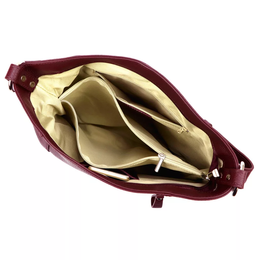 Dámska kožená kabelka MiaMore 01-045 DOLLARO bordovej farby 35 x 30 x 13 cm