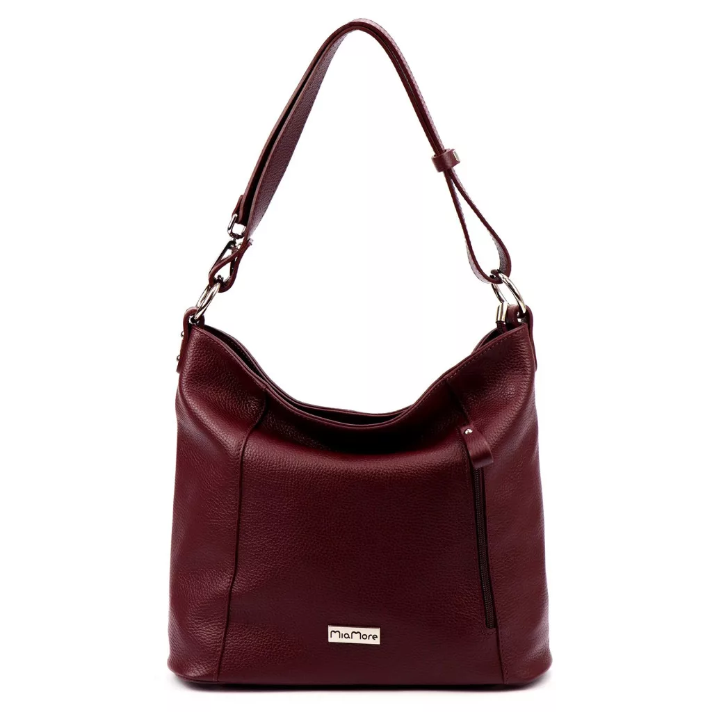 Kúsky kolekcie MiaMore kombinujú kvalitu, ženstvenosť a praktickosť. Ak hľadáte charakteristický, elegantný a všestranný doplnok, vyberte si túto krásnu bordovú koženú kabelku cez rameno – objednajte si ju teraz!
