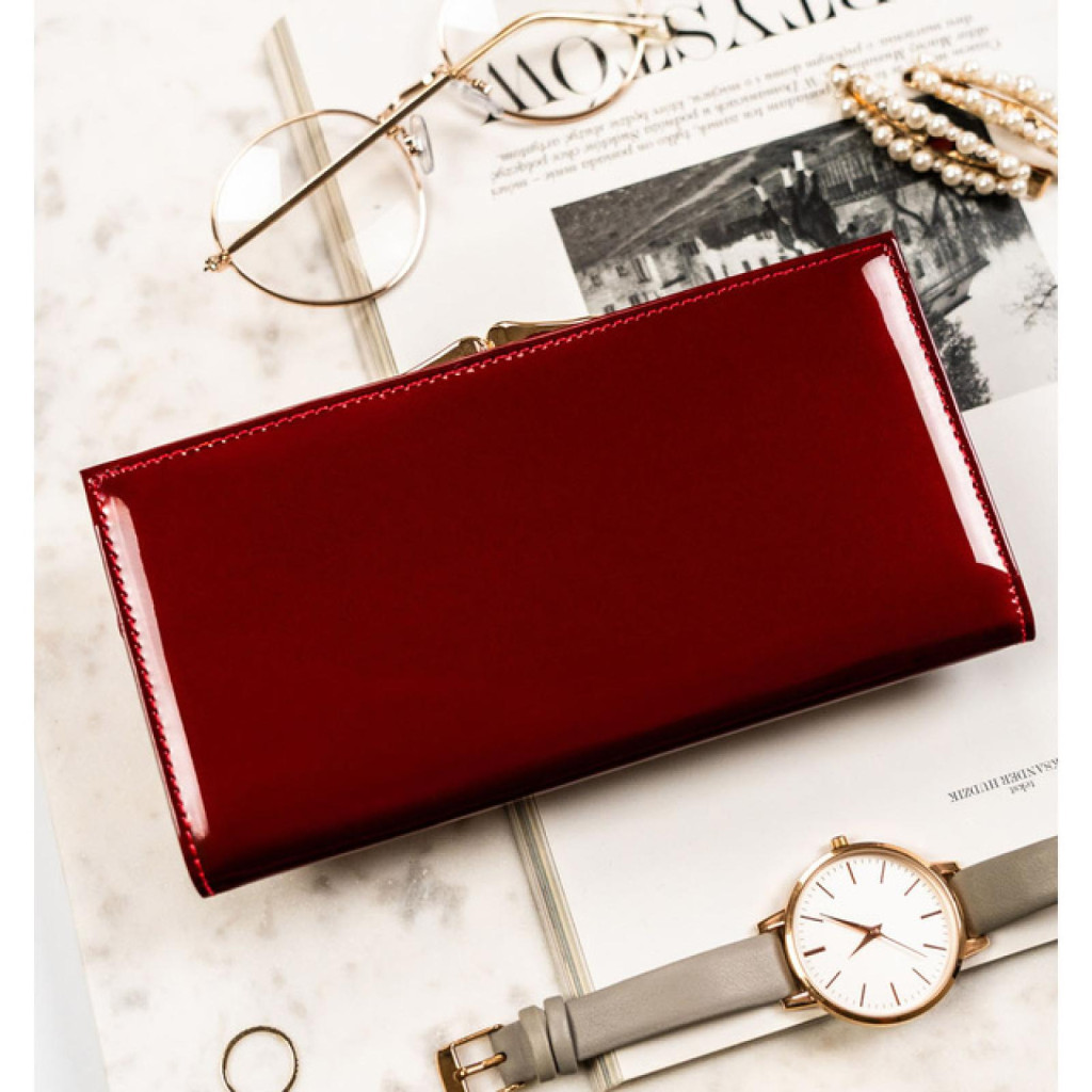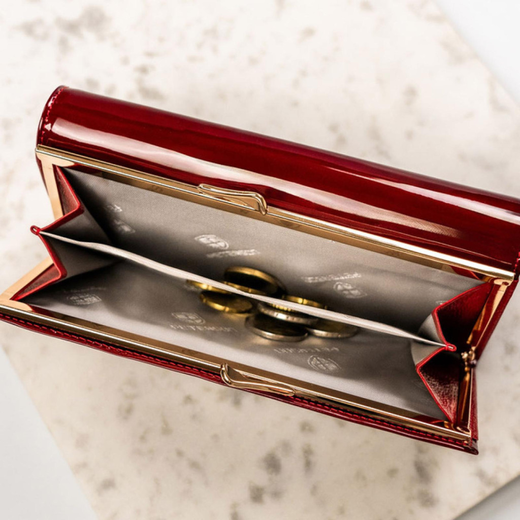 Dámska peňaženka Peterson PTN BC-421028 z hovädzej kože, červená, je perfektnou voľbou pre tie, ktoré milujú klasickú eleganciu a výrazný, no zároveň vkusný vzhľad. Lesklý povrch z lakovanej kože vytvára luxusný efekt, zatiaľ čo kvalitná hovädzia koža zaručuje odolnosť a sofistikovanosť. Krásnu červenú farbu zvýrazňujú zlaté doplnky, vďaka čomu je peňaženka nielen praktická, ale aj skutočne módny kúsok.