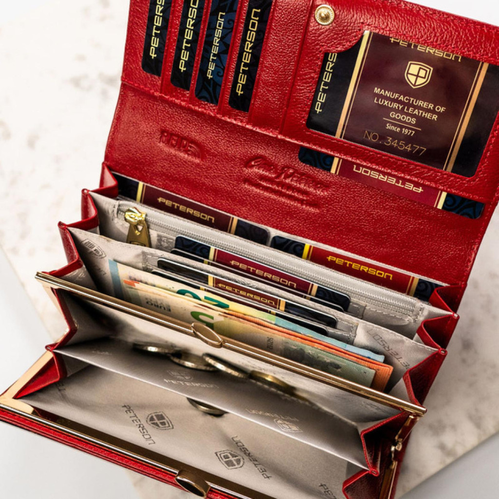 Dámska peňaženka Peterson PTN BC-42122 z hovädzej kože v červenej farbe - stelesnenie vášne, elegancie a sofistikovanosti