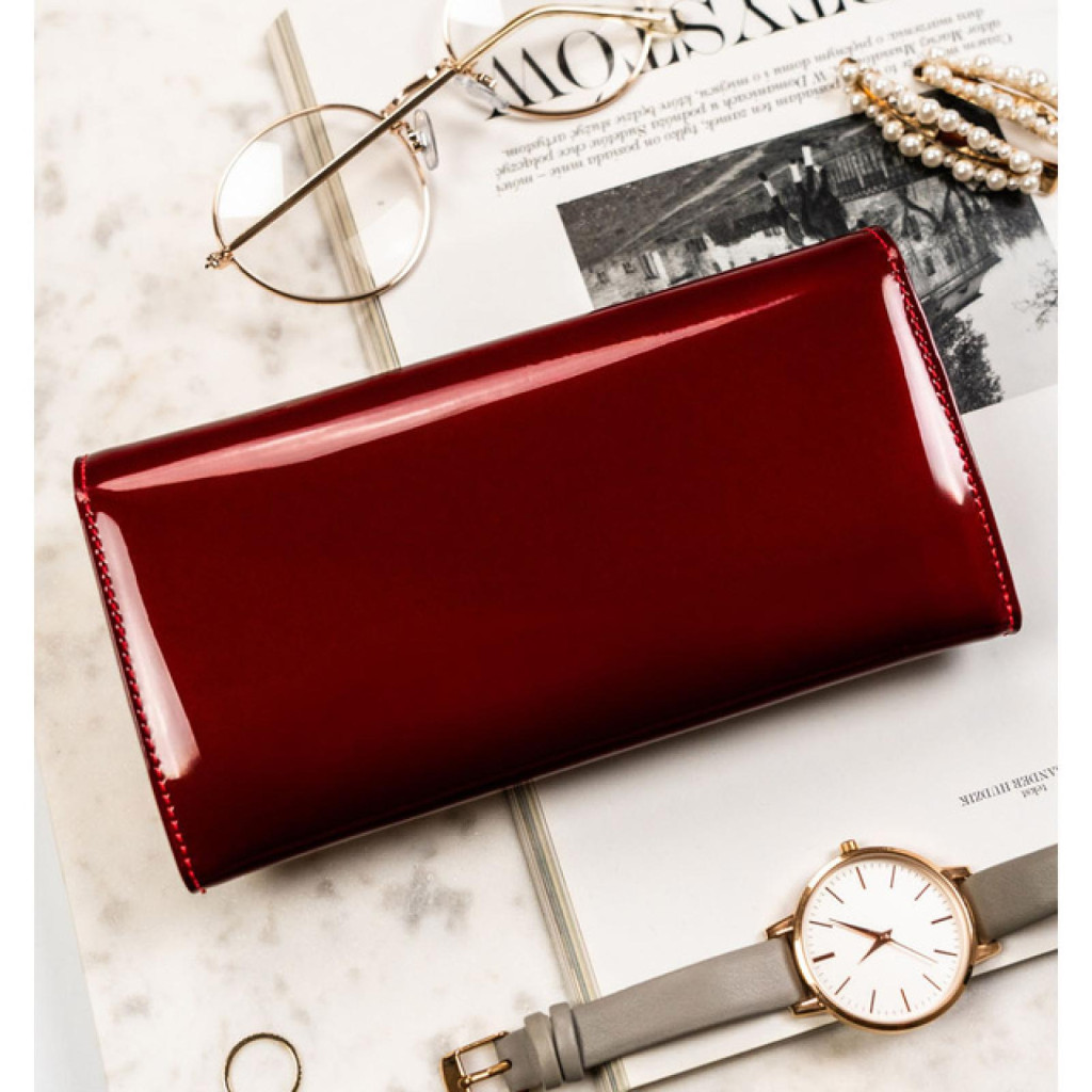 Dámska peňaženka Peterson PTN BC-42122 z hovädzej kože v červenej farbe je perfektnou voľbou pre tie, ktoré rady kombinujú ženský štýl, modernú praktickosť a vysokú kvalitu. Je potiahnutá lesklou červenou lakovanou kožou, ktorá je nielen elegantná a pútavá, ale vytvára aj skutočne exkluzívny efekt. Červená farba je vždy symbolom sebavedomia, energie a ženskosti - odtieň, ktorý dodáva svojej nositeľke charakter a robí každý vzhľad výnimočným. Zlaté doplnky ešte viac umocňujú tento luxusný pocit, vďaka čomu je peňaženka perfektným doplnkom každého elegantného outfitu.