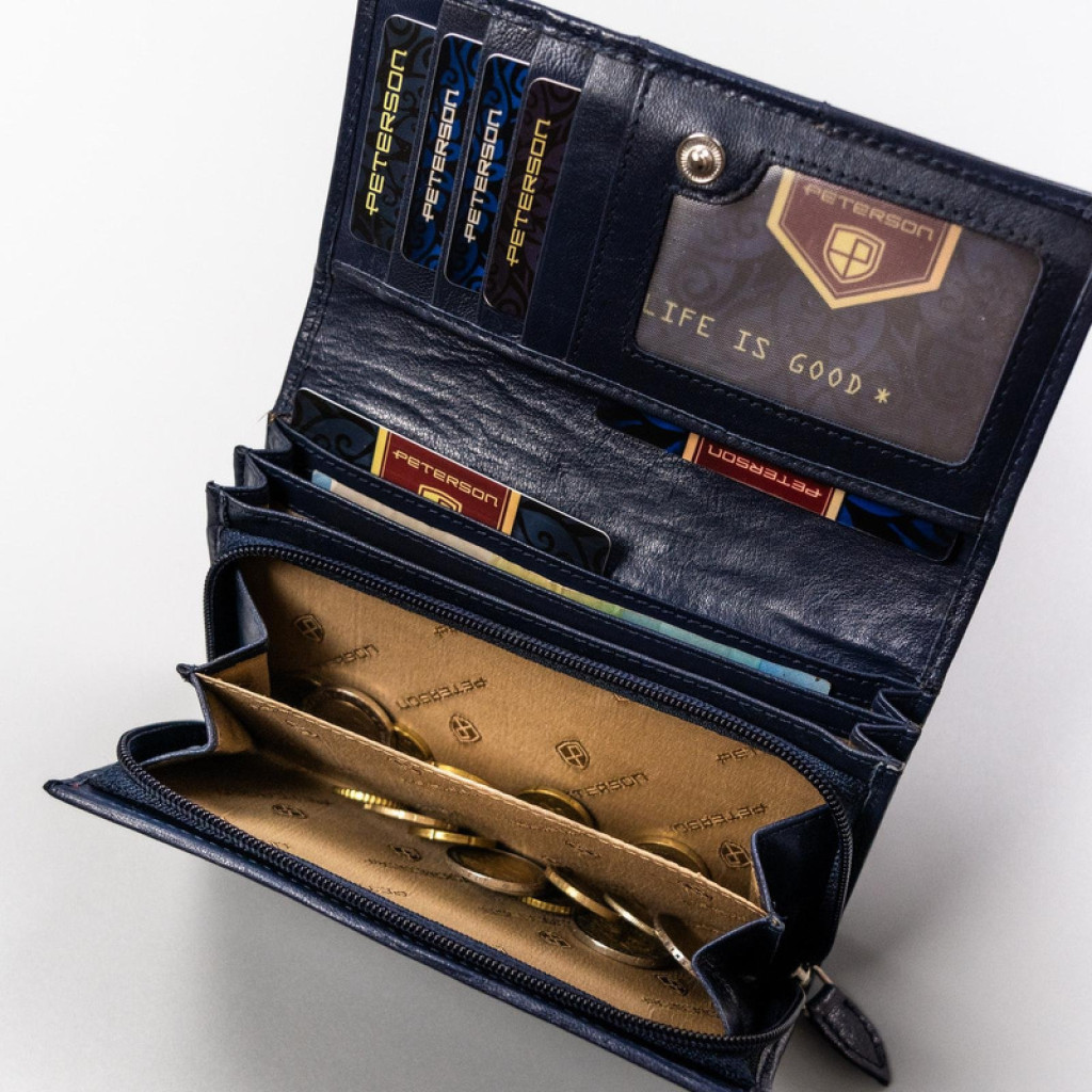 Dámska kožená peňaženka Peterson PTN KA-22 tmavomodrá - Elegantný a praktický doplnok