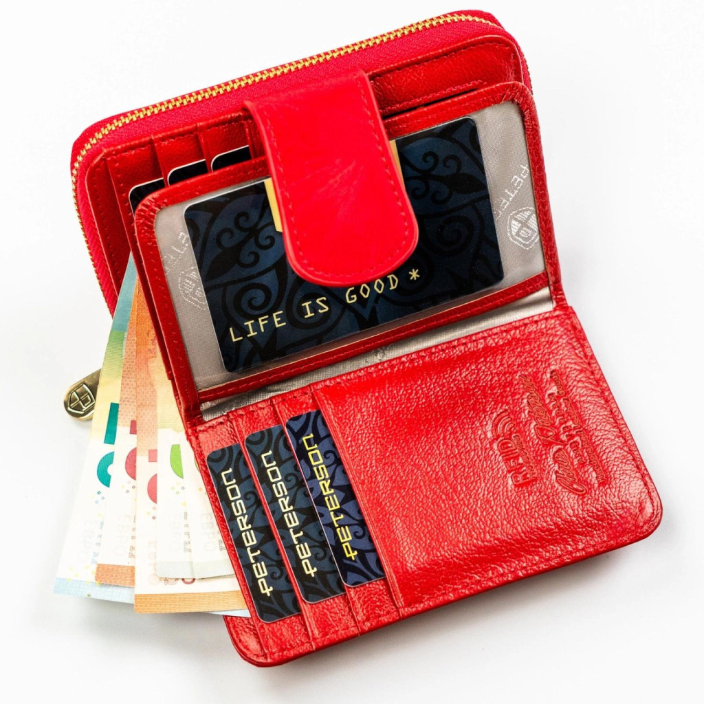 Dámska peňaženka Peterson PTN PS115-MLF z hovädzej kože, červená - elegancia, poriadok a moderné zabezpečenie