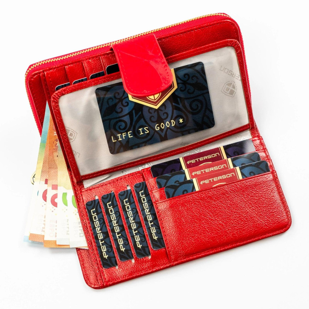 Veľká červená dámska kožená peňaženka Peterson PTN PS116-MLF - elegantná, priestranná a bezpečná voľba